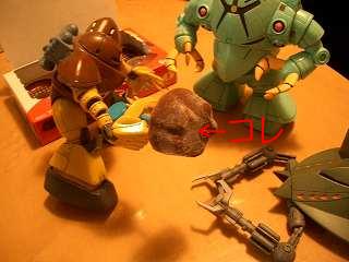どうも。愛玩動物モルモットでぱぷてまうす。コレやらアレやら・・・こんなのあったっけ(TwT)未公開で、放置してまうすが、そのうち公開しまうす。ご主人様今、在庫の「Ζガンダムに登場、1/144スケールの某MS」開発ちう。武器番号でいうと、「PMX-うんちゃらかんちゃら」でございまうすね。意味なく謎を残しまうす。で、その「PMX-うんちゃらかんちゃら」・・・なんかコレ・・・予想以上に、でかい・・・むー。結構大型だったのでございまうすね。ご主人様ちとびっくり。コレに匹敵するでかさでございまうす。どうも、妙にでかいザクです。マシュマー君ちの、ザクさんかい?と、ほぼ同じ・・・というより、もっとでかい可能性が・・・ぶるぶる。ちなみにその謎MS、旧キットでございまうすのでコレではございませぬ。・・・て、1/144の「PMX-なんとか」って、コレ除いたらアレしかないぢゃ無いですか。おまけ「本日の20世紀の親切」「ほう、これは親切な。・・・しかしコレで足りるのかね?」画像のモノは、改良強化新型グフに付いてた奴でございまうすが、「PMX-なんとか」にも付属してたり。昔は、こんなの付いてたりしたのでございまうす。懐かしいと思った「にうタイプだが、ちとオールドタイプ」な方、遠くでも見つめて下さいませ。