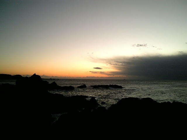 行ってまいりました最初は 神戸方面を予定いたしておりましたが・・((= ̄□ ̄=;))ナ、ナント!!潮岬まで走行距離 280キロ?!私は居眠りをしておりましたがハンドルを握ってる方は さぞ お疲れだったでしょう着くともうびっくり車だらけです日の出ツアーの 観光バスも いっぱい!潮岬とはそういう場所だったんですね私は 年賀状作成の魂胆があるんでズンズン降りていきましたその岩場も人でいっぱいですわ 岩場で撮った第1号でもね あいにくの曇り空でその瞬間は撮れませんでしたいつも 釣りに来てるというおっちゃんが今日はだめだ!と退散 お連れさんが携帯で撮ったフォト素晴らしい!! 結局日の出っぽく撮ったのはこれで・・不本意ながらこれで 年賀状を作りました 明るくなったらこんな状態テント村が出来てました原っぱがパーキング 《でも無料》そして・・・パパラパパラの暴走族まだ 生息してたんですね・・・パトカーも 機動隊もいましたみんな 無視ですわそんなん 構ってるヒマ無いの!!帰り 阪和道のパーキングでちょっと休憩~~~意識がなくなること3時間!あわてて ご帰還岸和田のサービスエリアで『みかんパン』を購入息子様がハラを空かしてピ~~ピ~~ こんなお正月を過ごしてしまいましたとても 家庭婦人とは思えません独身の若い子と一緒ですわ《若い子もせんかなぁぁぁあ~~~》