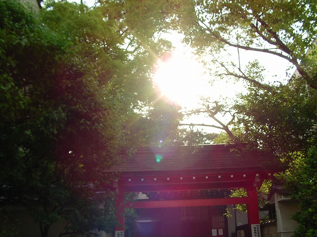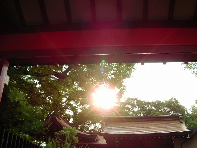 おはよう~~っす今朝はチャリで 淀川を超えようかなぁ~~~どかな???今朝のおひさま 神社の裏口 西出口~~~ほな スタンバリます