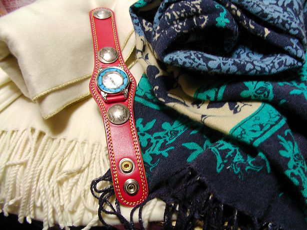 昨日 たまたま面白い腕時計を見つけました文字盤のターコイズとシェルがかわいいベルトがイマイチ・・・それならこの際 思いっきり遊んで赤色のベルトにしました黒やベージュ こげ茶と 普通(?)のも在ったんですけど・・・色遊びですストールやスカーフの扱いが苦手ですマフラーも若いこのようにうまく使えませんでも 買っちゃいました柄物1枚ソフトホワイト 両脇のミミがゴールドの糸でまつってあります私にしたら 買ったことが無いバージョン自分にクリプレ ということで~~~・゜゜・(/□\*)・゜゜・