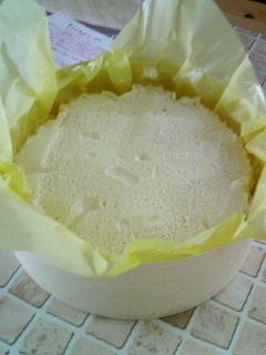 もうすぐバレンタイン。 というわけで・・パパのためにチョコレート・・ 毎年トリュフや生チョコなど作るんですが・・この間チョコレートケーキを作ったところだし今年はベークドチーズケーキを焼くことにしました。 14日は平日だし、ハルの健診もあるのでちょうどお休みだったしね。 カノンも土台のクッキーを砕いたり、クリームチーズを混ぜ混ぜしたり 舐めたり・・それから舐めたり・・ あ・・舐めたりは余計ね。 カノンとママの怨念・・いえいえ愛情たーっぷりこもった チーズケーキが焼きあがりました。 お味は結構濃厚な感じがありましたが・・ とってもパパ好みなお味に仕上がったように思います。 レモン汁を多めに入れたつもりだったのに食べてみたらあまり レモンのさわやかさがなくって残念だったけど・・ 上出来だった・・と思います。 しかし・・味見と言いながら一切れパク・・ 包丁入れるたびにくっついたクリームをパク。 一日寝かせてから切ったらよかったんだろうけど・・ 今日作ったら今日食べたいしねー。 ちょっと切り口が汚らしいねー。 私ったらば^^;; 味見でもうおなかいっぱいです。 父母やいとこにも味見してもらいました。 いとこからも手作りクッキーをもらい一足早いバレンタインデーでした。 パパは美味しい美味しいを連発して食べてくれてました・・ カノンもスポンジ土台のケーキは好きではないのですがチーズケーキなら喜んで食べてくれます。ハルも欲しがるんですよねー^^;;まっ!たまにはいいでしょ!自分で作ったものは美味しいもんね。ヨカッタヨカッタ! 今度はレアチーズケーキにしてー!とリクエストがあったので 近々作ってみまーす。