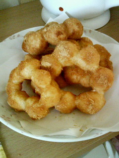 最近手作り簡単おやつに目覚めている?私です簡単手間なし私には外せないキーワードです。なんせさぁやろうと思ってもすぐ邪魔されますから短時間でパパッとできなければ無理~。昨日は昼から義母さんのところへ3人でいくことにしていたのですが、うん悪くハルが昼寝してしまったために出そびれたのでカノンとおやつを作ることにしました~。今回もクックパッドのポンデリングふうドーナツのレシピを参考にさせてもらい分量をちょっとアレンジ?して作りました~。ホットケーキミックス、豆腐、だんご粉、水これだけ~。時間もないのでスプーンにすくって油の中へポイッ。この辺は私の性格が表れた仕上がりとなっています・・。仕上げにきな粉と砂糖を混ぜたのをまぶしたら完成 これが偶然にも・・・いつも気に入って買いに行くパン屋さんのきな粉パンの味に似た仕上がりになって自分でいうのもなんだけどかなりオススメ自信作に仕上がりましたもちもち感がお好きな方!お餅好きな方!やってみてくださいませ~写真撮り忘れて・・・いとこにお裾分けした分を一応写真に^^
