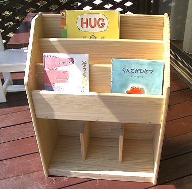 我が家で大活躍しているパパが作った絵本棚。 子どもにいつでも絵本を読める環境を・・と思うと まずは選びやすい絵本棚かどうか?ということがポイントになってくると思うのです。 背表紙ではなかなか選びにくいですよね。 でもディスプレイできると表紙の絵がパッと目に入るので 読んでみようという気持ちになるようです。 1歳のハルでも自分でここから絵本を取って来て、きちんと 片付けることも出来ます^^ その絵本棚を初めてオークションで出品しました。 集成パイン材を使った今回は無塗装のものです。 絵本好きな千葉県のお宅へお嫁入りすることになりました。 初めてのことで梱包なども大変でしたが・・ 作品も喜んでいただけた上、梱包も下手な業者さんよりも丁寧だったと 言って下さって嬉しい限りでした。 パパの休日を利用して作るのでなかなか作れませんが もしご入用がありましたら作りますよ笑