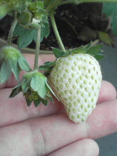 小さくていびつな形のイチゴの実 の写真を撮りました。
