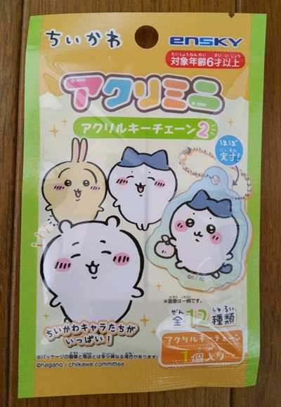 もう1つ、これも「ちいかわ」のアクリミニ。パッケージには、キャラクターのアクリル製のキーチェーンが入っています。