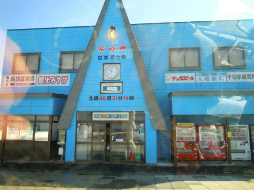 「2番じゃだめなんですか!?」と言った大臣もいたが私にとってこの1番も2番もとっても大事なのである。何の事か読者諸賢に見当もつくまいだって私だって「どう書こうかな~」なんて書きながら思う体たらく謝れと言われれば素直に謝りますゴメンナサイ。 最○○となれば1番でそれ以外は2番3番と順位を下げる。稚内に向かったのは1番を極めるためでもあるし2番だって捨てがたい両方極めるのは当たり前である。 1番・宗谷岬。言わずと知れた日本最北端だが礼文島も入れるとちょっと違う択捉島まで入れると大分違う。そう言えば子供の頃の日本地図に樺太南半分も記載されてたが今はない。夏場は♪そぉうやのみっさきぃ~♪が流れて旅情は泡沫の如く消え去るが冬は猛烈な風と寒さで旅人をほとんど寄せ付けない。そこへ行けるのは選ばれし勇者さあ勇気をもて旅立て!励まされたって行かねぇや普通。私は選ばれてなくても行くのです行って宗谷の返り討ちに遭う。空が碧かった。 2番・ノシャップ岬。宗谷岬から返す刀で討って出たが碧空はみるみる曇天と化し雪まで降りだす。前日の気温5℃がウソみたいシンジラレナ~イ肩を竦めて両手を顔の横でヒラヒラしてもこれは現実。利尻は灰色の奥。学生の頃ヒート○ックもない石器時代マイナス15℃風速20m/h吹雪のノシャップに行ったわアタシ。バスの運転手さんにも心配される始末だが若さは馬鹿さ何も考えず暢気に記念撮影。でも10数分後異変が起きた。何故か息が苦しい感動の余りか違う鼻腔が凍り始めてた。揉むとジャリジャリ音がしたわ焦ったわ。今回は凍結と強風に行く手を阻まれたがどうにか写真撮影したが最北端の水族館フウセンウオが次に来ると睨んでるノシャップ寒流水族館どころではなく日本で2番目に高い灯台を写してとっとと勇気ある撤退。