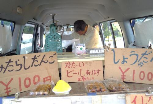 早起きしてTVオン。帰省ラッシュニュース「中央道の渋滞予測は・・・40kmです」マジか。萎える。その分下は空いてるかも。何事にもプラス思考でなければバイクのような夏にストーブ冬に強冷房になるバカ乗り物には乗れない。 約束より大分遅れたピンポーン。師匠はトランポ(ハイエースのような1BOX)にバイクを積んで来るのでチョット渋滞にはまるとすり抜け技は使えない。「ゴメンゴメーン」。 今回は前回のコースを逆周り。奥多摩周遊道路は下りメインになる。市街地は私が先頭。下道はお盆休みって事もあり近場お出かけ車でやや混み。しかーし。準備の良い私はちゃんと裏道を用意してたのさ。師匠、こっちです。右折して左折して酷道への合流地点に向かう。 ここから師匠が前を走る。第1回と違うバイクは師匠とっておきの愛車で17年も経ってても外装ピカピカでエンジン絶好調キック一発。いいなぁ・・・師匠のバイク。ウネウネした片側一車線の道を辿って奥多摩湖へ向かう。周遊へ行くには少しだけチョイチョイ曲がるポイントがあるんだけど大丈夫かな。そう思ってたら案の定左折ポイントを通り過ぎる師匠。私は曲がって戻る師匠を待つ。「ゴメンゴメーン」相変わらず自分のテリトリー以外の道を知らないな(-_-;) 周遊に入る。カーブの連続で師匠の背中があっという間に遠ざかる。待ってー!サラブレッドの速歩を追いかけるミニチュアポニーの全速力トコトコトコトコトコトコーーーー!気持ちはビューンだが追いつけないので追うのを止めてマイペース。途中師匠は待っててくれるが走り出せば元の木阿弥。仕方ないのでマイペース。トッコトッコトッコ・・・ 月夜見第一駐車場でお約束の休憩。気温28℃。私にとっては25℃以上は猛暑。駐車場を改めて見回すとカキ氷や団子を売ってる1BOX。カキ氷休憩。上空に怪しい黒雲が。「早く食え」焦って掻き込んだら前歯に凍みてアウアウ。 途中パラッと来たが無事帰還。1時間後に大雨。昼も食べず帰った甲斐がありましたね師匠。「そうそう、あの辺イイ道があるんだぜ。次はそっち行こう」 師匠の"イイ道"って・・・エンジンの慣らしが終われば外装を慣らす事になりました。第3回に続く!(ヤケクソ)レトロなカキ氷機が素敵で小父さんに頼んで撮影。手書きの品書きがいい味出してる。