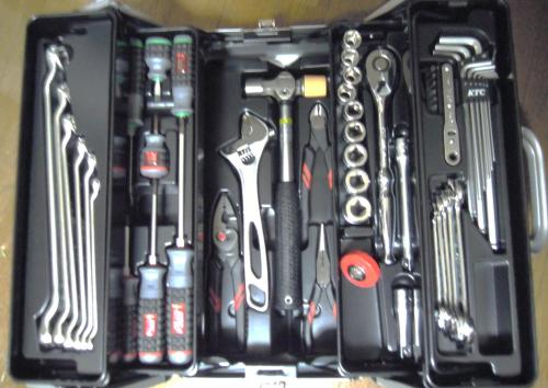 バイクを買った10数年ぶりリターンライダーここに1人増える。警察や救急車や保険会社を煩わせないバイクライフを送れるよう祈りつつパワーストーンのブレスレットを買ってみたり。バカ。 それにしても初期投資がかかる。ヘルメットにグローブ工具バイクカバー盗難防止のチェーン(2本)ジャケットやカッパじゃなくてレインスーツって言うんですって今は思いつくまま買って10数万円。 初めてバイクで北海道に行った時はバイクもメットもグローブもカッパもリュックも全部借り物で買ったのは防水ギヤバッグ(別名ずだぶくろ)とウェストポーチ工具は車載工具があれば大丈夫かなと思ってケースを見ればカラっぽ8/10/12/14のコンビネーションレンチ買い足しは無職の折に手痛い出費であった。それでも人件費削減でクビになったバイト先の給料12万円で1ヶ月北海道をフラフラしたのだから上出来か。最初は10日間のつもりだったのですが。フェリー会社に「日程変更を・・・」と申し出たら3回目には「次はもうダメですからねっ(怒)」と叱られたのも楽しい思い出であるシミジミ・・・ バイクに必要なモノは?答え。工具セット京都機械工具(KTC)製。何故メットやグローブじゃないんだ自分?ツッコんでみたがコレにはちょっとしたワケがある。 2回目の北海道ツーリング季節外れの10月上旬では友を誘おうにも誘えない単独行。「稚内20km」の案内標識を右折しようとした時異変は起きた。後輪が突然左右へ大きくバウンド慌ててバイクを停めて確認したら・・・パンクである。あちゃーどないしよ誰もいないいるのは私だけ。 チューブタイヤはタイヤを外さないと修理ができない。タイヤを外せるメガネレンチは持っていたがタイヤレバーを忘れる粗忽ピーンチ!しかし神は私を見放さなかった目の前にちょっとした商店。「あのーこの辺にバイク屋か自転車屋さんはないですか」おかみさん「市内(いやココも市内だが栄えてるって意味で)に行かないとないねぇ」「パンクしちゃって・・・」「あらぁ大変おねぇさん何処に泊まってるの」「稚内ユースです」「それじゃカマタさんとこね電話してあげるわ」 カマタさんに事情を話しその店で温かい茶などいただきながら待つ事40分。軽トラが来て見覚えのある自転車&バイク店の小父さん「ホントは引き上げ(=ロードサービス)やってないんだけどねー」バイクを荷台に積み私は助手席の人。 チューブ交換してるのをシゲシゲ見ながら思った。バイクの不具合アクシデントは自分で何とかできるようになろう、と。ヘルメットは道路交通法で定められているから被る昔は原チャリくらいならノーヘルも多かったグローブもなきゃないでOK必須とは言えない。一番必要なのは工具それも高品質な。 バイク屋はおろか民家さえない所を走るんですもの安心を買うんだよ我が身に言い聞かせて買ってみたら工具セットはケースの中に整然と並んでるのではなく自分でセットする形式。昼からジグソーパズル気分を味わう。♪しーんぱいないからねー♪何か起きた時、最後に愛では絶対勝てない。初めて買った工具も聞きかじりのKTCだった。ツーリングではここからチョイス。