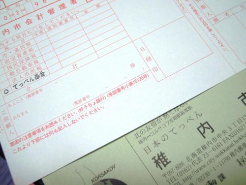 「ふるさとは遠きにありて思ふもの/そして悲しくうたふもの/よしや/異土の乞食(かたゐ)となるとても/帰るところにあるまじや」(室生犀星『小景異情 その二』より) 望郷の詩を謳えるのは故郷を持つ者だけである。私の生まれた大阪は2歳で離れて以来ほとんど訪れる機会がなく懐かしいも何も覚えていないだから。恐らくその地で過ごした時間が"思い出"に昇華されなければ"ふるさと"にはならないのだろう。 馬齢を重ね幾星霜あの街この山その海。行動半径が年齢とともに広がるにつれ日本国内は8県を除き訪れたコンプリートするつもりはないが。中でも北海道は改めて数えれば鉄道・飛行機・バイクで20回以上行っている。阿呆だ阿呆です一旦気に入ると昼飯も同じ店に通い詰め3年間を何の疑問も持たず過ごせるのです。 仕方ない。故郷がないなら勝手に認定してくれよう。ダダダダダ・・・(ドラムロールね)ダン!「ふるさと勝手に総選挙第1位。北海道・稚内です(楠田枝里子さんの声で)」困惑する稚内とまどいつつ壇上へ「1位と言っても一人の意見なので・・・」でも稚内くん君は故郷だ。旅行中滞在日数を総合すれば君が断トツなのだよ。 で、考えた。宗谷本線沿線も民家が消えつつある場所も増えた。稚内駅は改築で立派になったが3面あったホームは1面のみ南稚内駅は売店すらなくなった。コレはいかん。寄付ってほど大金はないし年に何度も行けないし。 Google様に訊いてみる。答え「ふるさと納税しなされ」。 コトバレベルでは知ってたが実体を知らなかった「ふるさと納税」。では納税しようか。ふるさと納税ポータルサイトから寄付をしたい都道府県を選択さらに市町村を選択し地域のページへ飛ぶと自治体のHPへ。申込書に必要事項を記入したらE-mailやFAXで送信。簡単。私は北海道の2自治体に申し込んでみる。翌日。郵便局の払込用紙が届く。納税額と住所氏名を記入し振り込んで完了。 旅行の前に目的地へふるさと納税。にわか地元民になれて少しくらいは役に立てて確定申告すれば控除対象だし特産品が貰えたりして好きな所が大好きになるかもしれない。アナタもレッツラゴー♪稚内市の払込用紙。てっぺん基金だそうです。ちなみに特典らしいものは特にないけど好きだからいいの。