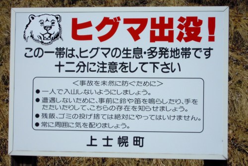 2ヶ月ほど前、滅多に鳴らないケータイが鳴る。 「俺だ俺だ。GWは長い休みが取れた。北海道行こうぜ林道走ろうぜ」・・・オフ車の師匠だ そんな誘いに私が喜んで乗るとでも?アナタは存じないかも知れないが4月下旬~5月上旬の北海道の気候は関東の2月くらいを想定した方がいいですよ。ましてや林道、標高が上がれば雪が残っています。熊つまりヒグマは冬眠から覚めています。「寒さ・雪・クマ」の3点セットはお断りです。 「いやいや待て待て。ナビもルートも任せる。俺たちを北海道に連れてって(*^_^*)ウフ」 そう師匠とその仲間の大半は渡道した事がない。海外のレースには出てるくせに灯台モトクロス、いや下暗し。逆に私の北海道ツーリングはソロなので林道いわゆる未舗装路は絶対に入らない。・・・そうだ。 「いいですよ」 私にはある思惑があった。「幻の橋」それは冬から初夏の間は姿を現し夏から晩秋にかけて姿を消すという。そこへ通じる林道は事故や熊の出没が多発し許可がないと進入できない。師匠+αの力を借り、その橋を見てやろう。 しかし渡道1週間前でもなかなか北海道の気温が上がらず峠のライブカメラは時折雪で白い。日頃の行いが悪いのは認めたくないが残るは神頼み。すると数日前に一気に気温が上がり雪解けが進む。これなら行ける。決行だ!一人密かに気合を込め酒飲んでご飯食べて寝る。 同行のメンツはオフ師匠と猪のような男・N氏。二人は阿呆だがテクニックは不足なし。これで私の野望?も叶うというもの。わはははは。 北海道2日目。午前中はトータル20数kmの林道に突入。雪・落石・深砂利・急坂・急カーブおまけに倒木で私の乏しいテクでは四苦八苦の二乗三乗ゼェゼェ。でもあの橋を見るまでは。リポ○○ンのCM以上の根性を発揮して先へ進む。橋を見るには林道に進入する許可を得てゲートのカギを借りなくてはならない。所轄の森林管理署で注意事項の説明を受け申請書に記入し通行許可証とカギを受け取る。「ヒグマは最低でも親子2組の5頭が生息してます。くれぐれも注意してください」職員の方に念を押され少しく怯む。が行くしかない。 目的の林道入り口まで近づくとこんな看板が。「十二分に注意してください」最善は林道に入らない事だろうがそうはいかぬ。進め進め。 ゲート前に到着。「熊目撃情報」。最後通牒。「3月28日・31日に目撃」ソレデモイキマスカ?ヤメマスカ?イキマスデース。 ゲートをカギで開けて元通り閉め林道に入る。フラットで整備された道はたちまち深い森に包まれグネグネ上り荒れ出す。日差しをも疎らな道の左右には笹が茂って今にも"出そう"。ビビリ心を伏せて進む事約10分・・・見えた・・・熊への恐怖心も忘れシャッターを切る。水の引いたダム湖に白いアーチ橋。古代遺跡のような趣を漂わせているその橋に遠くない過去には汽車が走っていた。夏にかけて水が張られるとその姿は水面下に消える幻の橋。近い将来に間違いなく消えてしまう橋。 もっと近くに行けないだろうか。湖畔に通じる道は藪に覆われている。2歩3歩進んでふと地面を見ると・・・土の上に熊の足跡。ぎゃあああああああ。ダッシュでバイクに跨り師匠とN氏を置き去りにしたのは少々反省。ちなみに熊さんは5月2日にも目撃されたそうです。