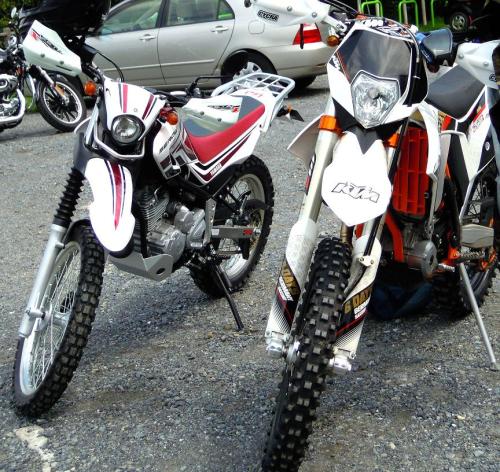 真っ直ぐ&オトモダチ作戦は酷暑と渋滞で空冷エンジン様チョー不機嫌の仕儀と相成りあえなく玉砕。現代の車社会は"ナビ"なんちゅう有り難い文明の利器のお陰で裏道に回っても何のアドバンテージも得られず。軽い熱中症で死兆星を見る。 バイクを駐輪してるガレージ入り口付近が何やら工事でバイクを出せない週末。窓拭き床拭きそれでも暇。ネット記事やバイク関連のHPをウロウロしてると「乗りたかったバイク・乗ったバイク」が眼に留まる。さて、自分はどうでしたっけ?【乗りたかったバイク】1台目:VT SPADA250(当時ネイキッドが大流行し中古でいいから欲しかった)2台目:CB400SF(車検があるのはもっと収入が増えてからなんて思って)3台目:CB1000or1300SF(限定解除(当時)して最終的にはビッグバイクに♪)4台目:外車。ドゥカティとかKTMとか【乗ったバイク】1台目:Serow225(半年くらい借りた。北海道も行った)2台目:Serow225W(SPADAは中古でも高くて買えず。初オフロードで壁に刺さる)3台目:XR250(オフが走れないテクが悔しく意地購入。EUバージョンの中古ボロ)4台目:XR250(USバージョンを新車で。保安部品は私&仲間でDIY取り付け) ~ XR400(USバージョンの新車。ローンが長かった) CR80LW(年末エンデューロレースに出た後の籤引きで当たった) TLM200(オークションで間違って落札した激安バイク)8台目:Serow250(10数年ぶりリターンライダーこれしか無理と思い)・・・全く理想と現実はかけ離れておる。 2台目は通勤・街乗り専用のはずだったのに「オフ車がダート走らないの可哀相」などと誘われてオフロードツーリングに行ったのが運の尽き。転倒こそ免れたが握り拳2個分くらいの石に跳ね上げられ左の土壁にグサリ。1週間に1回はピカピカに磨き上げた自慢のボディは土と小石で稲妻模様が刻まれ涙目。くっそぅ。 ここからオフ車の歴史が連綿と受け継がれるのだから最初の1台ってホント大切だと思いますです。ハイ。ちなみに上記4台目~7台目は同時持ち。生活マジで苦しく米を粥にして増量してた位なんで自身の経済事情もよくよく考慮すれば吉かと思います。ハイ。ここには渡道の度に行くがその先の最北端のGSで何かもらえるとは知らなかった(マヌケ)