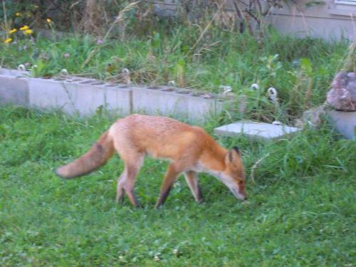 翌朝。早く目覚めたので食堂で「ご自由にどうぞ」コーヒーを飲みながらTVでニュース番組なぞボーっと見る。「おはよう。良く眠れたかい?」あ、おかあさん、朝までノンストップぐっすりでした。「もう少し待っててね」おかあさんは台所に戻る。 バイクにオイルでも注すか。潤滑オイルやチェーンルブ缶を持って下りる。チェーン注油はメンテナンススタンドがないので苦労してるといつの間にか起き出したおにいさんが手伝ってくれた。ついでにおにいさんのバイクを見せてもらう。今年10年目で車検に出そうか買い換えようか迷っているとか。よく手入れされたバイクは年式を思わせない。バイクは不思議なもので"道具"の域を越えて一緒に連れ立って行く"相棒"なのだ。同じ風を受け同じ道を駆け同じ苦難と歓びを味わう。「勿体無いですよ。まだまだ新車みたいじゃないですか」 食堂に戻ると用意ができている。「ゴハンと味噌汁は好きなだけお食べ」いただきまーす。青年はまだ白河夜船のようだ。イクラ醤油漬けを白いご飯に乗っけてワシワシ。上等の卵黄に似たコクが箸を止めない。次は目玉焼きを乗せて、次は漬物で、3杯のご飯を腹中に納める。うー腹が重い。でも満足。どうせ昼はビビリで食べないのだから。 「苫小牧なら昼頃に出ても間に合うよ」その間、おにいさんが滞在中に写した美風景写真を見せてもらったり、おかあさんが飼っている犬夫妻と子犬と遊んだり。ようやく起きた青年も朝食を済ませて帰り支度をしている。 青年が11:00頃に出る。様似までバス。宿の前のバス停に青年が佇む。「これ持って」手渡されたのは大漁旗。これを振るのだと言う。バスに青年が乗り込み発車。おかあさん・おにいさん・私の3人で旗を振る。開け放った窓から青年が手を振る「行って来まーーーす」「行ってらっっしゃーーーい」 12:00過ぎ。次は私が見送られる。「また来なよ」おかあさんの声を土産にアクセルを開け走り出す。「行ってらっしゃーーーい」ヘタクソは振り向けずまた振り向いたら泣きそうな気がして左手を振る。 途中、長い休憩を1回のみで苫小牧港に着く。目の前に停泊するフェリーに乗れば大洗まで途中下船不可。一路東京を目指す事になる。もう1日くらい・・・何度もそう思ったが大人しく乗船待ちの列に続く。あの頃は宿代や食費にも事欠くツーリングだった。今は宿でも食事でもある程度のゼイタクはできるようになった。その分"時間"を失くし"責任"が増えた・・・いやいや感傷に浸る間はない。「家に帰るまでがツーリング」である。締まって行こうぜぇ~!オー!宿の前に現れたキツネ。カメラを構えても逃げない宿の前で撮影してるとおにいさんがバイクと一緒の写真を撮ってくれて後日送ってくれた乗船を待つ。フェリーは行きと同じ「ふらの」大洗港は間もなく。天気が良い分、気温も高かった
