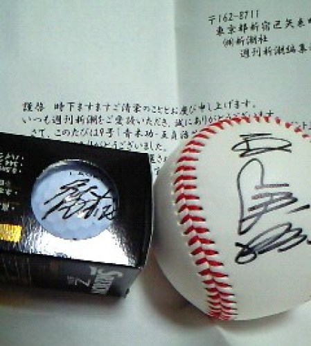 春。春=張るで乳房が張るつまり命が萌え出ずる頃。英語ではspring冬の氷雪は去り何もかもが弾んで若芽が伸びついでに恋も芽生える季節と世間的に言われている。今年の春は春らしくなく初夏以上の気温になって桜一気咲き一転冬の気温にブルブル季節が情緒不安定。 あ恋ですね初恋つまり初めての恋それを引き摺って生きる人もいるという人生のエポックメイキングな出来事ですか。ええ今も引き摺ってますよワタクシ今もときめくわよ。 それは王様。アラブのとか古代のではなく世界のホームラン王いわずと知れた王 貞治様。浅草散策の折に本所中学の校門傍に「気力」と揮毫した石碑を発見した時は余りの感動にボケっとしてしまい周囲を押し退けながらDr.イエローを撮影した勢いなぞ発揮できずポーとしたままフラフラ街を徘徊してしまった。これほど好きなのに届かない思い。 初恋。幼い4歳の私は恋をした王様に。ホームランをかっ飛ばす裏側にあった凄まじい努力努力努力。それが透けて見える風雪が刻まれた風貌。素敵。 だが当時巨人戦チケットはプラチナ以上レアメタルチケット買いたくても買えず諦め切れず球場周辺をウロウロすれば私設チケット販売のお兄さんやおじさんに「チケットあるよ」と定価の何倍も吹っかけられるのが関の山。せめてお姿を見たいそんなささやかな願いさえ叶わない辛酸を嘗める日々が続いた。それでも王様は絶対的王様。TVや新聞に雑誌あらゆるメディアに王様が出れば絶対チェック。偶然であったにせよかなりの確率で王様の出番は見逃さなかったと思う我ながらアッパレすごいんじゃね?自分で自分を誉める。 ある日いつものようにオヤジが愛読の週刊S誌をくれた。王様がプロゴルファーの青木功と対談してる記事。普段ならふーんと読み飛ばすのに何故か最後まで熟読ふと最終ページ下を見ると・・・ 「青木功&王貞治サインボールセット10名様にプレゼント」の文字。オヤジは読み終わった後にS誌をくれるのでそういった懸賞に間に合うことは滅多にないがその時は間に合う。どうしよう懸賞なんて当たったのほとんどないしでも王様だし夢のまた夢のサインボールが当たるかもしれないしハガキあったかなガサゴソあった応募してみよう。それでもグズグズして消印締切日直前に投函。当たんねぇよな・・・ 当たった。王様のサインボールはペンのせいかやや細いがあの柔らかい丸みが特徴のまま。初日は抱っこし2日目以降数日は眺め汚れちゃうとラップをかけ今はケースに鎮座させている。初恋って思わぬ形で叶うのね。諦めなかったからかしら偶然の相乗効果かしら。 え?青木サインボール?アオキはイサオもサヤカも同価値なのでゴルフ好きの上司にプレゼントしますた。到着当時。今、青木さんはいない。王様ありがとー一生大好きなままだろうなぁ