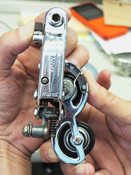 K氏から預かったものですが、これがどういったものなのか良く知りませんでした。いや、ユーレーが自転車のディレーラーを作っていたフランスのメーカーだってことは知っていたのですが、それ程自転車のパーツにのめりこんでいなかったので・・・しかも自転車に乗っていたのはもうずいぶん昔の話で。