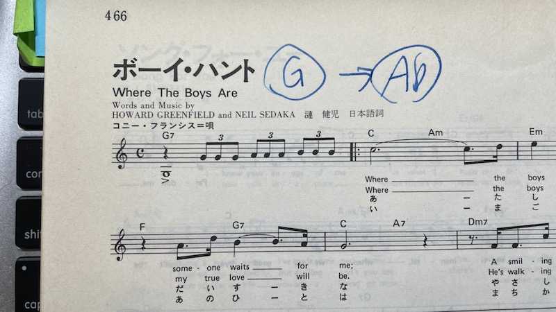“Where the Boys Are (ボーイ・ハント)” by Connie Francis 1961 ご承知のように、我らがコニー・フランシスさんが亡くなりました。 ご冥福をお祈りします。 そして、コニー・フランシスさんにはこのところの「今月の歌」に関する諸々のあたふたさ加減にもお詫びを言わなくてはいけませんね。 が、などと行っている場合ではないのです。 実は、僕が以前このブログを始めて間もない頃に書いた『ボーイハント』に関する記述に決定的な誤りがあり、その後訂正もせずにそのままにしていたんです。 「いつか直さねば」「今度訂正しましょう」などと思いつつ、すでに20年ほど経過してしまった。したがって、ここでこんなことを書く前に以前のブログに訂正を加えるべきなのですが、なにしろコニー・フランシスさんが亡くなってしまったので、まずはこちらに何が間違っていたのかを書いて、後日訂正版を作るつもりです。 さて、前置きが長くなってすみません。 『ボーイハント』の何が間違っていたかというと、実は訳詞者が漣健児さんではなく、奥山靉さんだったんです。 ちょっと言い訳させてもらうと、僕がずっと漣健児さん訳詞だと思っていたのは、当時のコニー・フランシスの曲の訳詞が漣さんのものが多かったことと、ブログを書くにあたって確かめるべく、僕の持っていた楽譜集「永遠のポップス①」を見ていたからです。 ↓こんなふうに書いてありました。 そうです。「漣健児 日本語詞」とはっきり書いてありますよね (現在これが訂正されているかどうかまでは確かめていませんので、もしもすでに直っているようでしたら、悪しからず)。 これは1990年に出た改訂版で、奥付に相当する1ページ目がこちら↓。 その後も改定されて現在も販売されている、老舗の全音楽譜出版社のオールディーズ楽曲集の定番です。現在は2019年版の第35版が最新版のようです。ちなみに僕はこれの初版が欲しいのですが、なかなか見つかりません。 話が逸れました。 それで、竹内まりやさんのアルバム “Longtime Favorites” が出た時に、『ボーイハント』のところに「訳詞:奥山靉」とあったので、あわてて調べました。 そしたら、うちにあった別の楽譜集にしっかり書いてありましたよ。 ↓それがこちら。「日本語詞:奥山靉」ってね。 こちらも老舗のシンコーミュージックですが、1988年の時点で正しく表記されているので、これを最初に見ていたら間違いは起こらなかったかもしれません。 いや、僕の頭に「きっと漣健児に違いない」という思い込みがあったせいでしょうから、責任は僕にある。 改めて、以上のように訂正してお詫びいたします。関係者のみなさん、申し訳ありませんでした。 特に、奥山靉さんと漣健児さんには大変失礼なことをいたしました。しかし、お二人ともすでに物故者で、さらにコニー・フランシスさんも先日亡くなってしまった。 今更、時すでに遅しですね。 せめて今夜はコニー・フランシスの綺麗な日本語で、『ボーイハント』を聴きましょうね。 『ボーイハント』[日本語版] by コニー・フランシス 1961 まだ訂正していない以前書いた日記がこちら↓。 2003.11.27の日記『ボーイハント』竹内まりや/伊東ゆかり 奥山靉さん(1902年~1969年)の仕事についてはこちら↓のページが詳しいです。 奥山靉 - Vinyl, CDs, & More ********** 7月19日放送の「穴沢ジョージの “Good Old Music”」のオンエア曲です。1. A Nightingale Sang in Berkeley Square (Rod Stewart) 2. A Nightingale Sang in Berkeley Square (Anita O’Day) 3. Cry to Me (Peter & Gordon) 4. Live Young (Troy Donahue) 5. The Look of Love (Dusty Springfield) 6. Washington Square (The Village Stompers) 7. Good Timin’ (Jimmy Jones) 8. Cuando Calienta El Sol (Vikki Carr) リクエスト曲は、4.カルロス・イノウエさん。5.酋長Kobaさん。6.尻焼原人さん。以上、ありがとうございました。 上記以外は穴沢選曲です。1.&2.が「今月の歌」で1.はヴァース付き、2.がヴァース無しの聴き比べ。3.は先週の「同名異曲」の続きで、ピーターとゴードンの “Cry to Me”。7.は6.が最近テレビのCMで流れている曲ということだったので、僕からも1曲。テレビでは日本語版の『ステキなタイミング』ですが。8.はこの日がヴィッキー・カーの誕生日(1940.7.19生,85歳)で。 以上。次回もよろしく。
