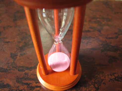 私は砂時計をじっと見て時間が来るのを紛らわしています。