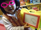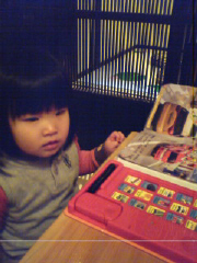 今朝、あいたんがパンを食べてる途中で、お腹をポンポン叩くので「あいちゃん、ウンチ?」と聞くと。。。(*¨)(*..)(*¨)(*..)うんうん とうなずきました。で、トイレに連れて行って、補助便座に座らせると。。。で、出ましたー!!!あいたん、トイレで初うんちょすですなんか、ま~たんがトイレでするのって、もう普通なんで、(今じゃ、トイレに行きたくなったら「おしっこ」と言って、自分で行きます)すんごい感動しました(笑)そういえば、ま~たん時も、そうやったなぁ~と懐かしかったりそして、15時頃から休みやった旦那と買い物へ。久々、西松屋に行って、マジックにかかり、5000円~。。。消耗品ばっかやのになぁお迎え後は、にこちゃん&ぽんちゃんと晩ごはん食べに行きました!ぽんちゃん、何してんのー?にこちゃんオススメのオモチャを貸してくれる居酒屋で、いっぱい頼んで、二人で5600円ホンマ、いっぱい食べたんで、めっちゃ安いです!チビ達も、一緒にトイレ行ったり、遊んだり、ケンカしたり、すんごい楽しんでましたうちも、久しぶりににこちゃんと会って、いっぱい喋って、めちゃめちゃ楽しかったです!!!