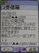 対策としては、「迷惑メール受診拒否設定」等の方法もあるが、 メールアドレスの@マークの前の文字数を15文字以上にしてアルファベットと数字を混ぜると迷惑メールは着信しにくくなる