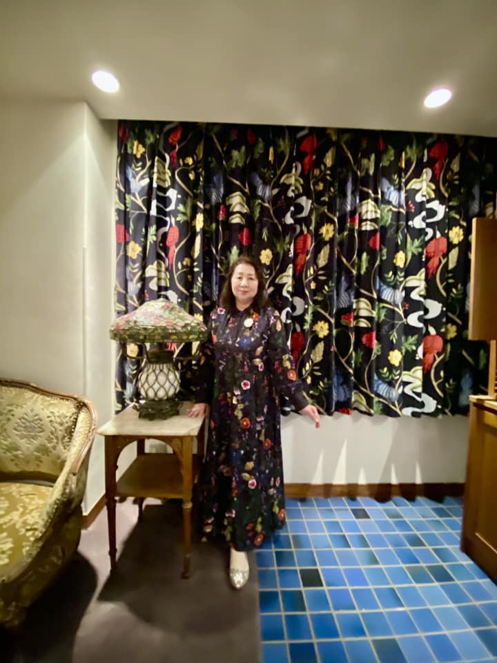 ラウンジのカーテンが降りていて、私の服とマッチ(笑)