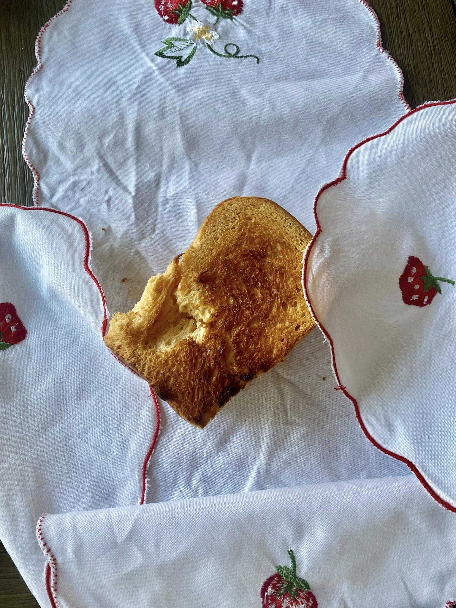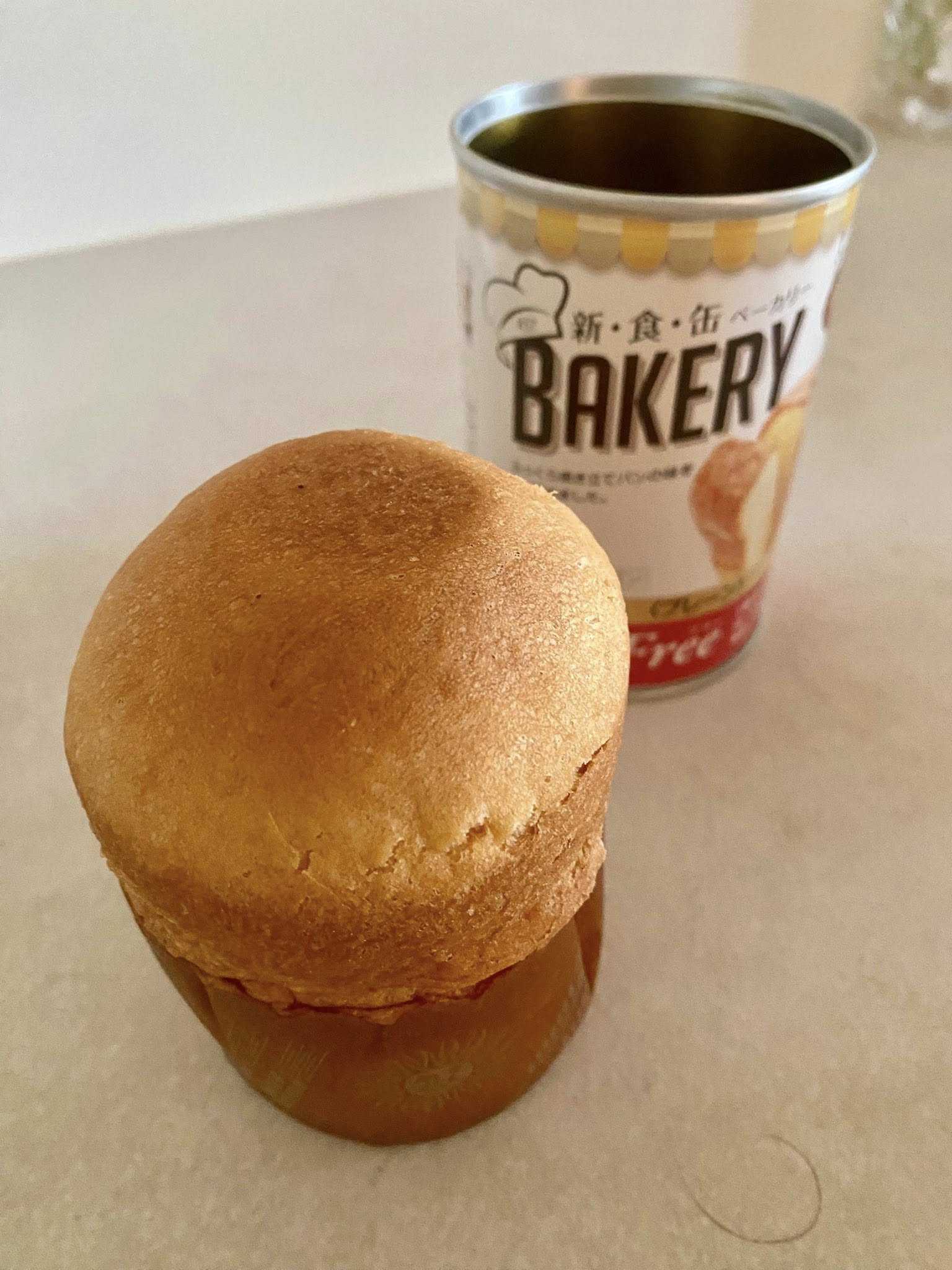 夫の買い置きの、保存パンを食す。