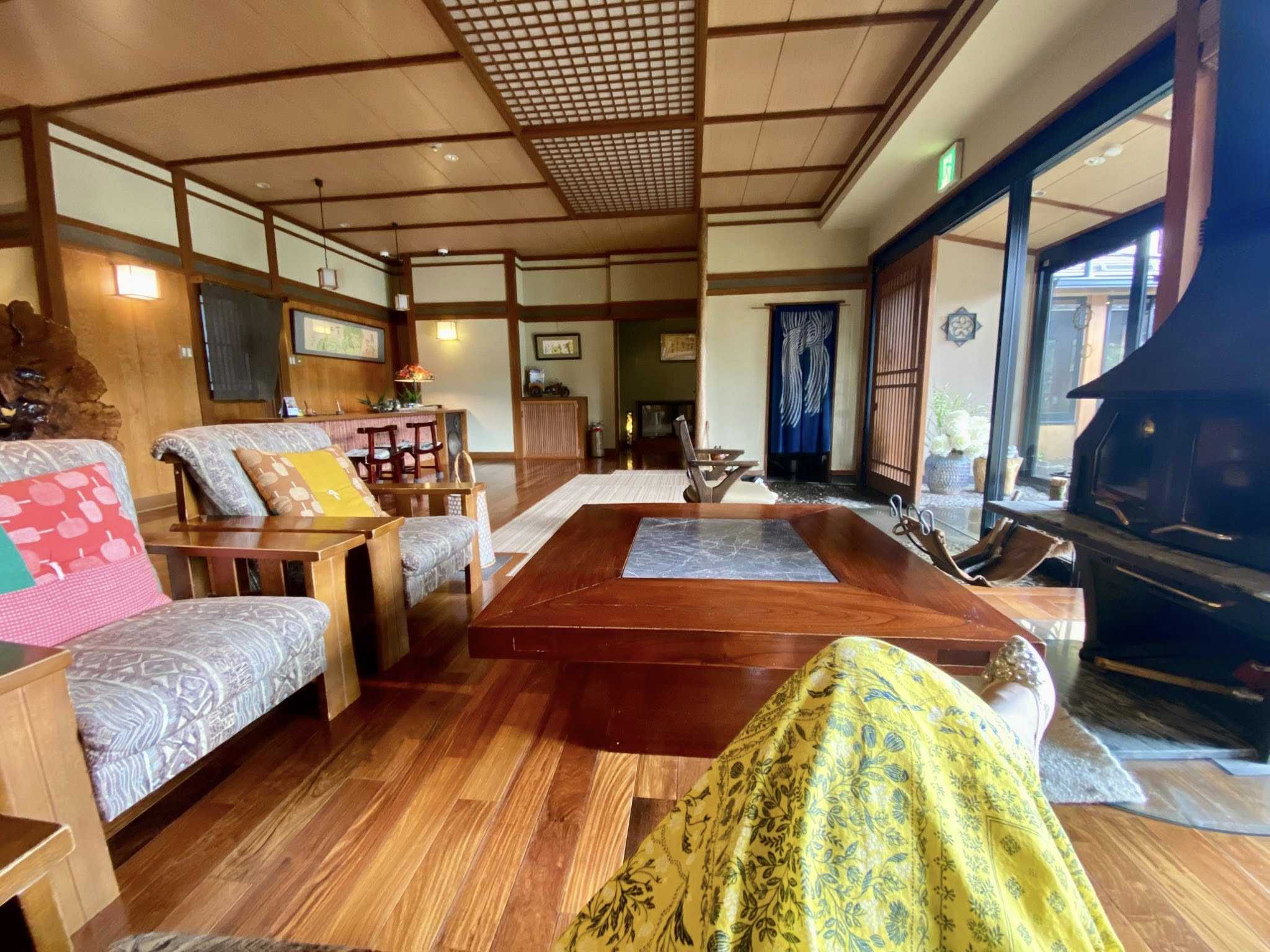 食後にロビーでくつろぐ。