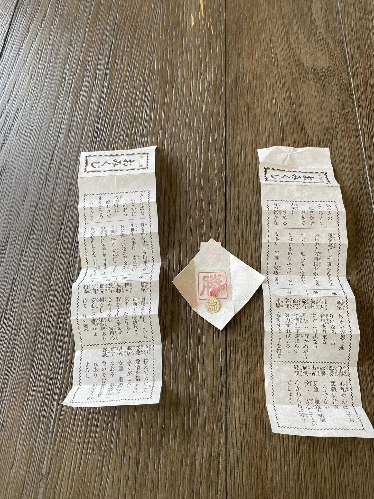今回引いた、おみくじ。