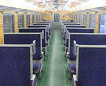 画像の天井にご注目下さい。たくさんの扇風機が見えるだけですね。おそらく非冷房車です。この辺は夏でも涼しいのでしょうか…。