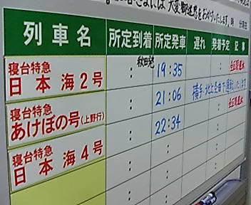 羽越線の復旧の見通しは立たない状態であり、少なくとも17日までは、奥羽本線・北上線・東北本線の迂回ルートで運行するとのことでした。