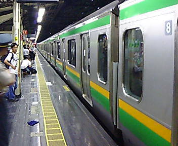 ところで画像は、横浜駅に停車中の普通電車小田原行きです。指定席を確保していない人は、「ながら」より数分早く小田原に着くこの普通電車で進み、小田原から「ながら」の自由席に乗れます〈ながらは小田原まで全車指定席〉。
