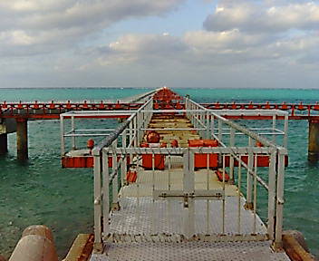 画像は下地島空港の滑走路北側の着陸誘導灯です。夜になるとこれが赤く光って飛行機の操縦士に滑走路の位置と方向を知らせるのです。