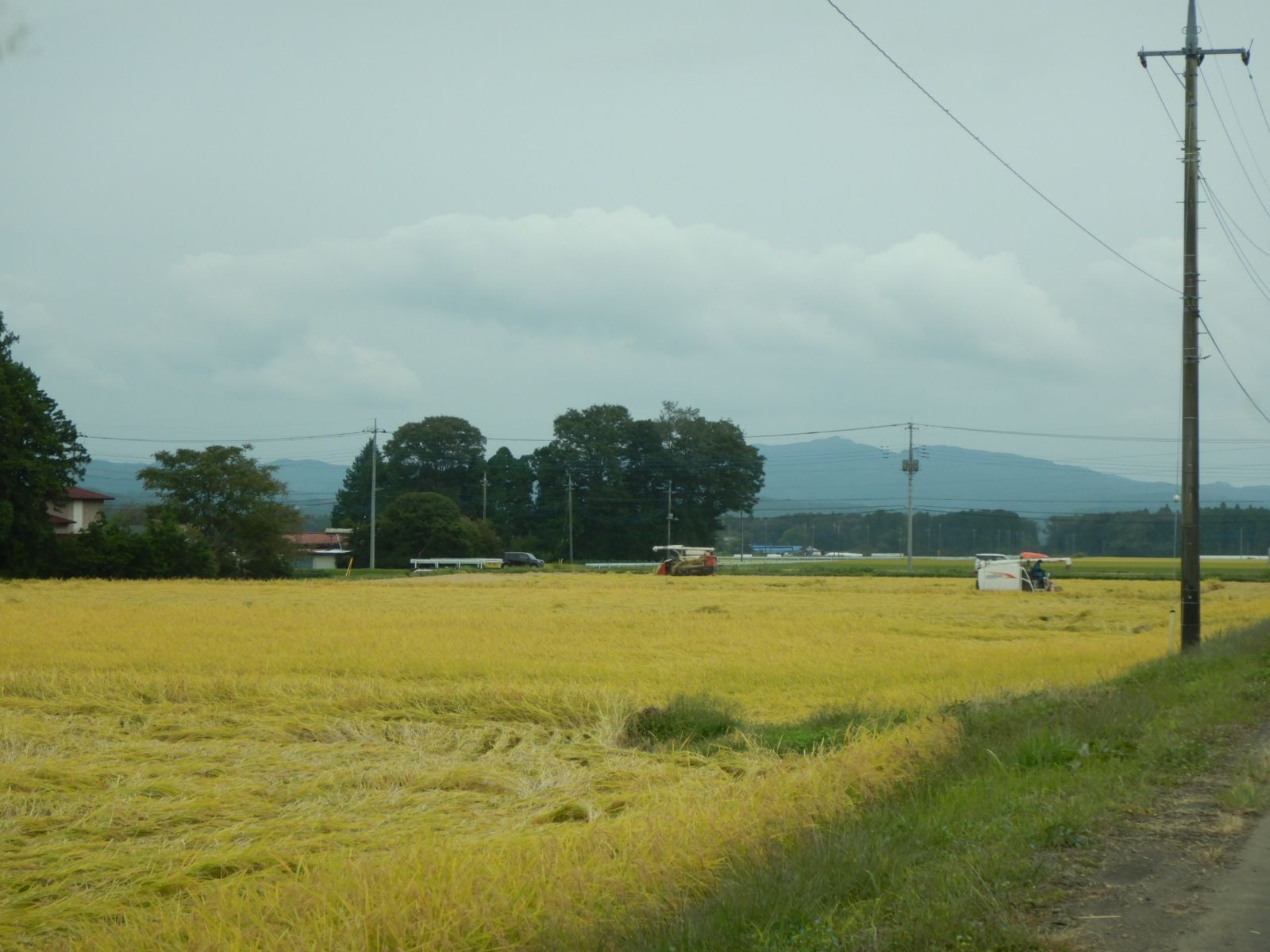 10月1日の空は曇り空、秋晴れとは行きませんが収穫の季節です。7月下旬から新米は出回っていますが、栃木北部の当地は9月に入ってからようやく稲刈りが始まりました。これから稲刈りは最盛期を迎えるようで、2台のコンバインがせわしなく動いていました。新米を買いに道の駅へ行ってきました。道の駅「東山道 伊王野」前回は売り切れていましたが今回は10時前に行ったので買うことができました。生産者が違う何点もの米の出品はありますが、この生産者のお米がお気に入りなので、20㎞離れたこの道の駅に来ます。お米の味は同じ銘柄でも地域や田んぼ、生産者によって随分と違います。