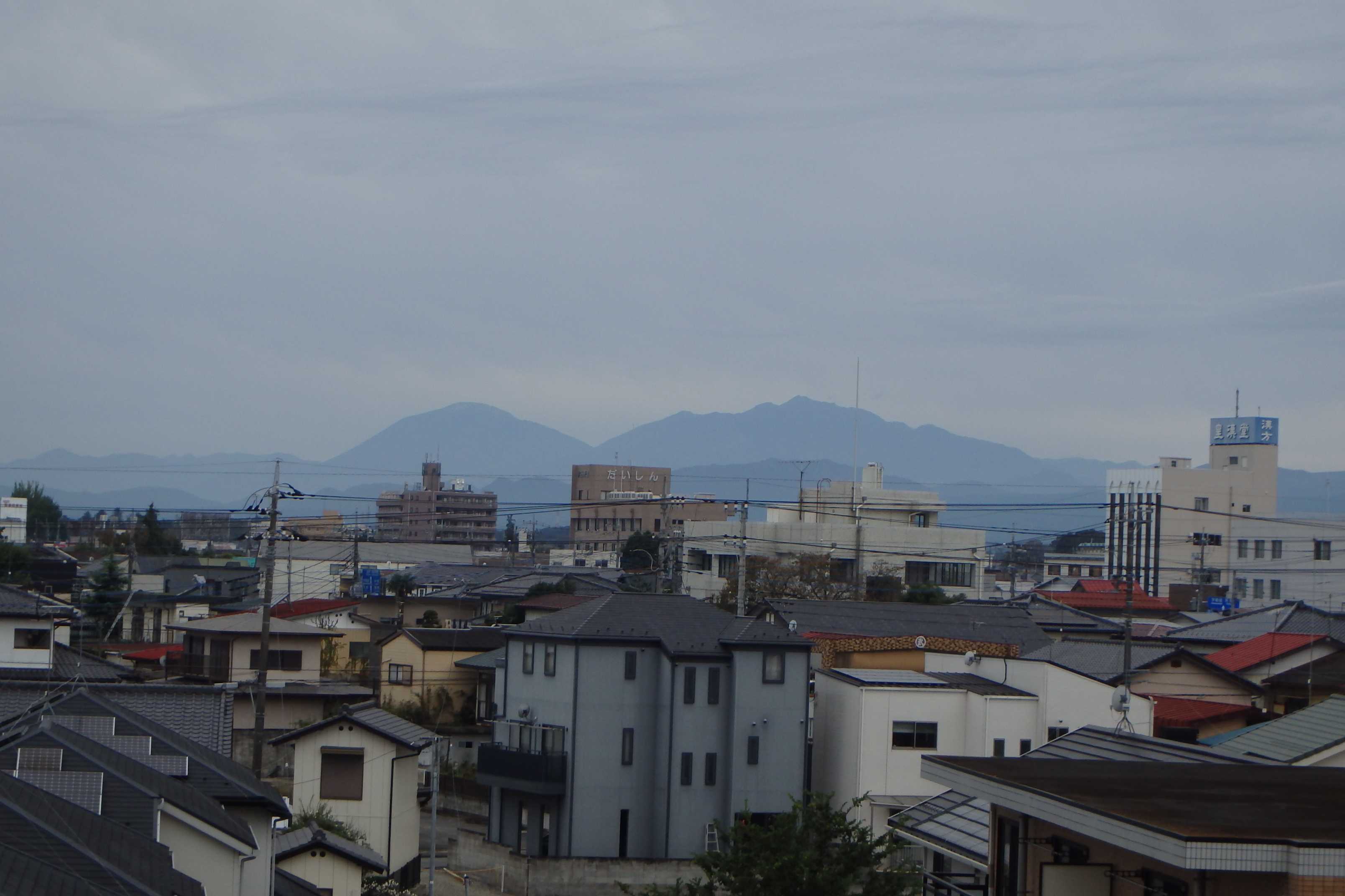 栃木北部の当地、今朝の最低気温は4.6℃、最高気温が20.3℃でした。栃木県は内陸の県ですから寒暖差があります。ソメイヨシノがすっかり葉を落とした城山です。手入れのされていない花壇ですが、菊の花が咲いていました。ムラサキシキブが小さな実をつけています。青々とした葉に隠れて紫の小さな実は目立ちません。西側の高い山は雲に隠れていますが、東側に福島と茨城県境の八溝山が見えました。八溝山は1021.8mで茨城県の最高峰です。