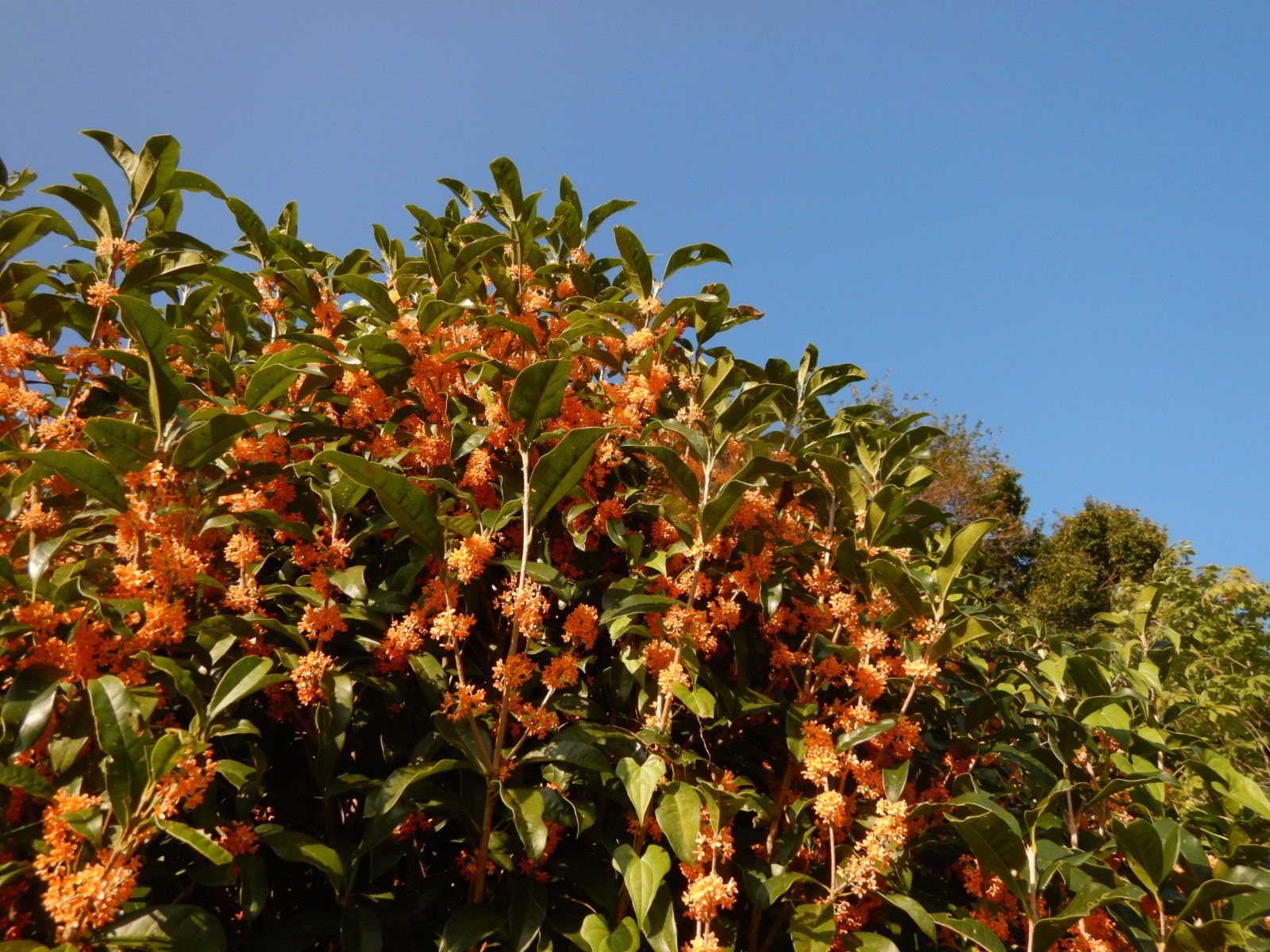 城山へ行ってみました。アサギマダラが来ているか気になっていました。ウルシの一枝が色づいていました。お堀の近くで蝶々が目に入りました。よく見るとアサギマダラでした。マルバフジバカマの蜜を吸っていました。8月に那須の標高1500メートル辺りで見た以来です。階段横の土塁の斜面にもいました。こちらの個体はヒヨドリバナの蜜を吸っていました。本当に美しい蝶です。アザミにも、年によっても違うでしょうが、キンモクセイの薫る頃に飛んで来るんだと記憶しました。弱々しいと思っていた蝶が、時々休みながらも沖縄や台湾まで飛んで行くなんて私には想像も出来ません。