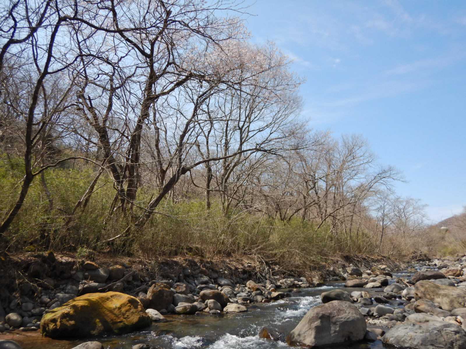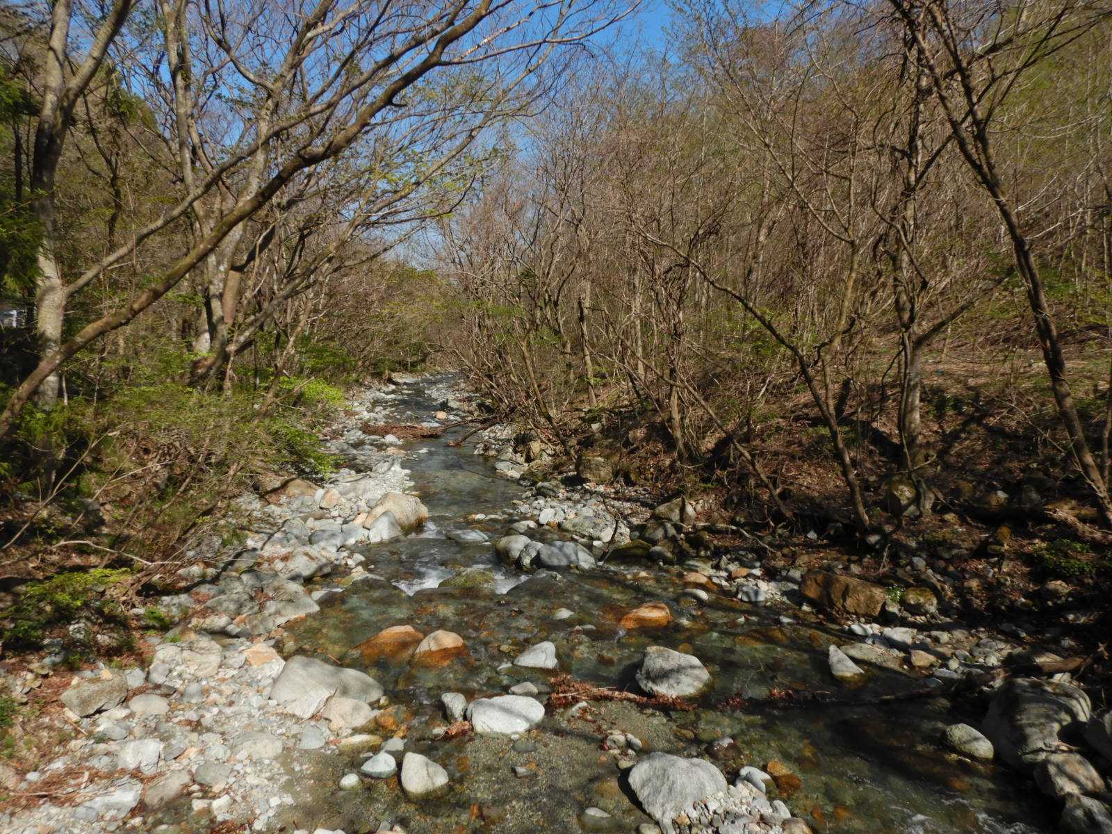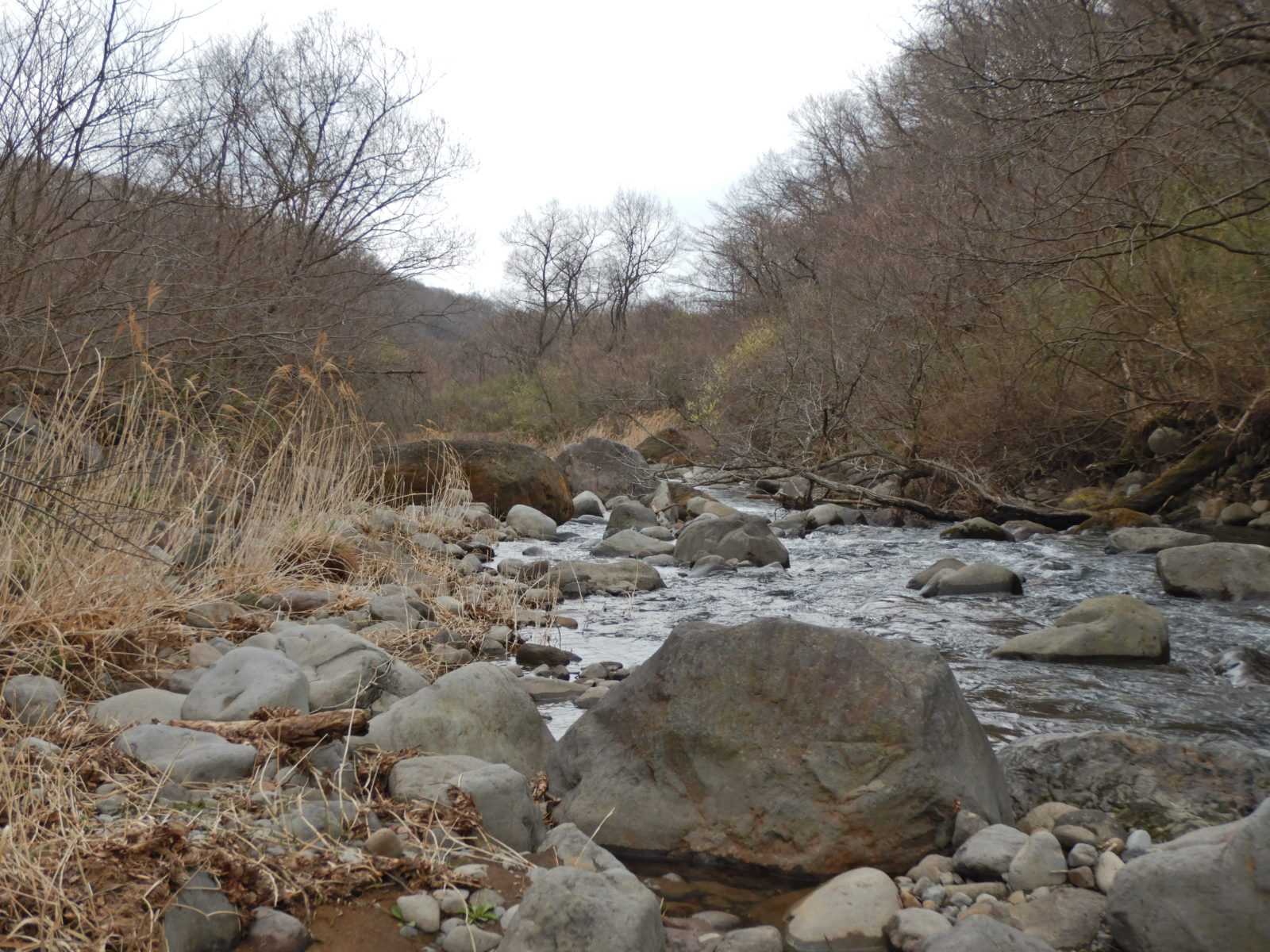 年に1~2度出掛ける山奥の渓流に午後から行ってきました。水が澄んでいるのは何時もの事ですが渓相は少し変わっていました。山桜の葉が出てきたようなので、花が咲くのも近いでしょう。渓相は申し分ないのですがアタリがありません。水温はかなりの低さでした。如何にもいそうな深場でコツンと来たので粘りました。20㎝くらいの黒いイワナでした。今シーズンの初イワナです。那珂川本流のイワナとは微妙に違う、沢のイワナでした。何しろこの川は下流では伏流水となって消えてしまうのです。水温が低いせいもありますが、この沢のイワナは黒っぽい色をしています。リリース、写真をアップするまで気づかなかったのですが、透明度に自分でもビックリしました。水の存在が無いみたいに写っていたのです。春の花がようやく咲き始めて来たようです。ニリンソウ、キクザキイチゲ、モミジイチゴ、ミツバツツジも咲き始めていました。標高約650mの山奥は車1台すら通りません。熊が出そうな山奥ですから、今日はヘルメット着用で熊スプレーもザックに入れて釣りをしました。釣りをしたのは砂防堰堤の間100mほどでしょうか、イワナ1匹でも楽しむことは出来ました。