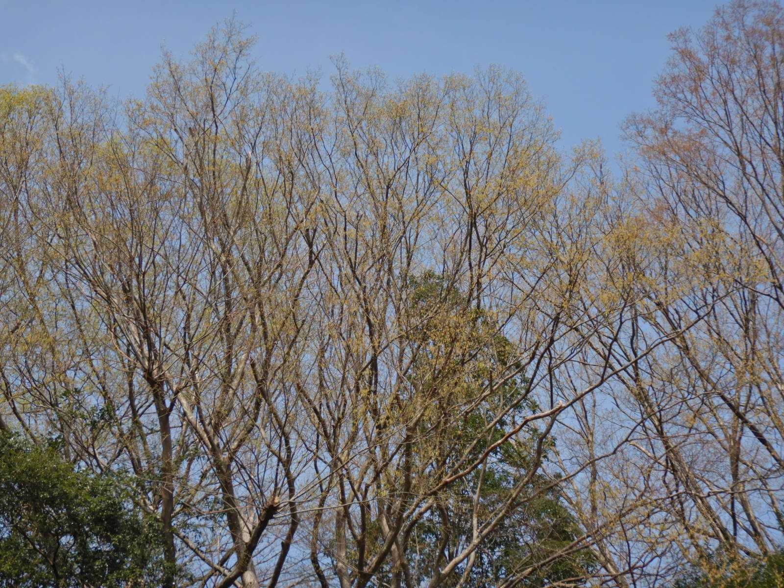 ケヤキの若葉は目にやさしい色です。神社の花桃が見頃です。紅、白、桃色と賑やかに咲いています。ミツバツツジ、モミジイチゴ、イカリソウ、ムラサキケマン、栃木北部の当地、今日は18.6℃まで気温があがりました。山が霞んで見えて、いつもの春です。