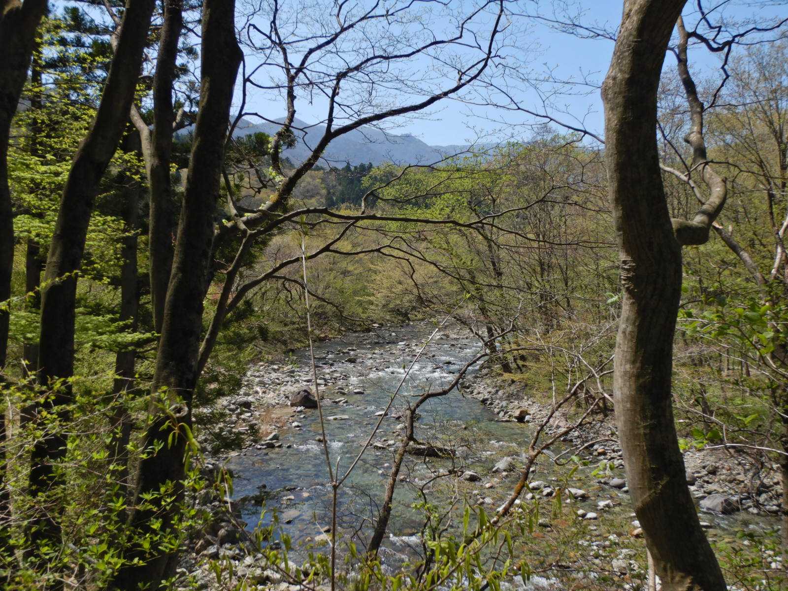 那須の山の麓でも気温は20℃もあります。今日はシャツに釣りベストで釣りができそうです。橋の上から見ると泳いでいる魚が見えました。もちろん釣り人も見えました。昨日の雨による増水で渡渉がやっとでした。小場所はことごとく水没しています。増水の日は小技が使えないので深場です。コツコツとくるのですが掛かりません。餌を変えるとヤマメがきました。あんなに晴れていたのに雨が落ちてきました。大気が不安定という天気予報があたりました。小さいのがもう一匹、雨が強くなってきて雷鳴も聞こえたのでここまでにしました。減水まで2~3日はかかりそうです。駐車場に戻ると大宮、横浜、春日部など首都圏ナンバーの車が何台もとまっていました。「お家にいてください」というのはお願いであって、強制力はありませんから仕方が無いのかもしれません。そういえば去年の今頃この駐車場は、緊急事態宣言によって閉鎖されていました。明日から5月、大型連休による移動が始ったようです。