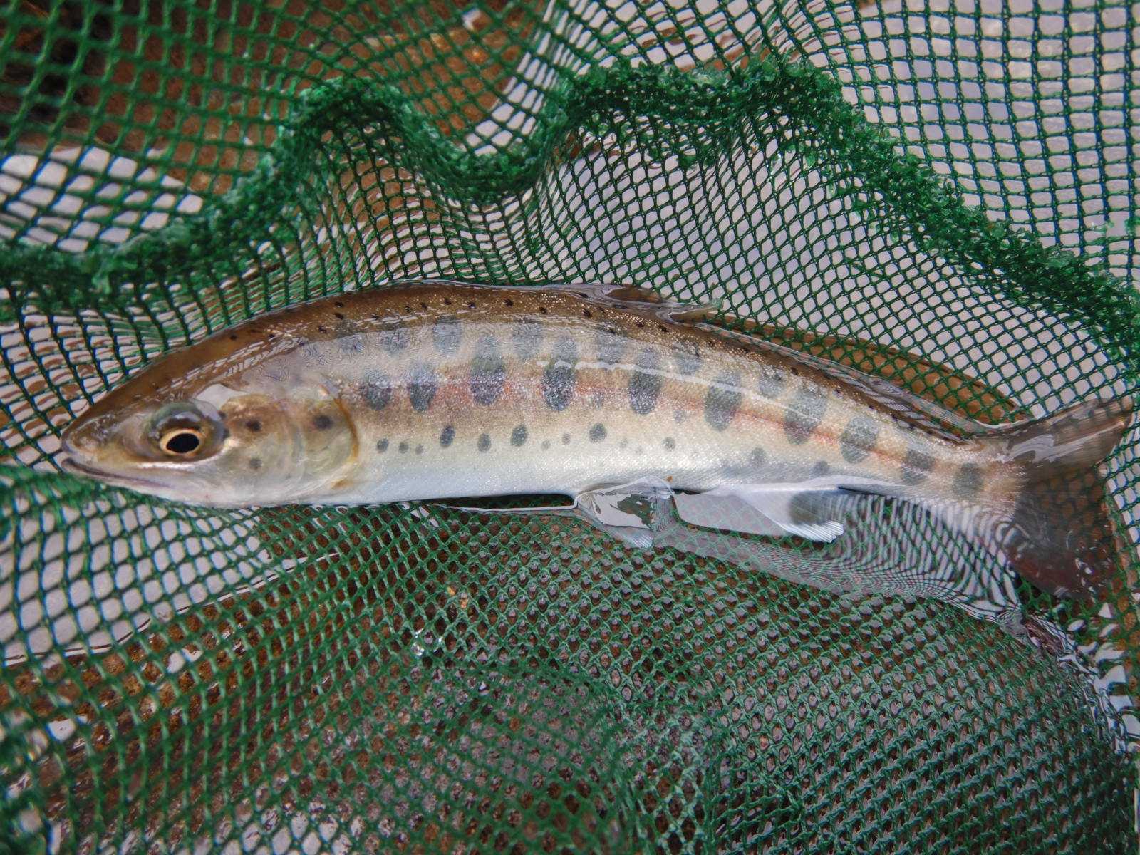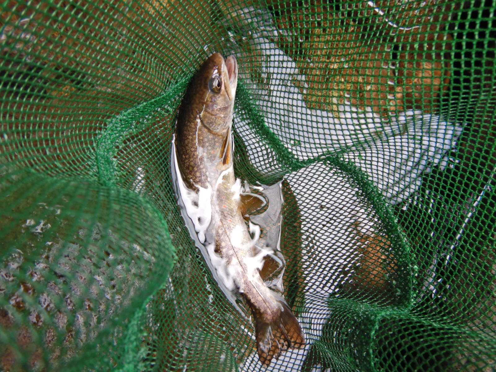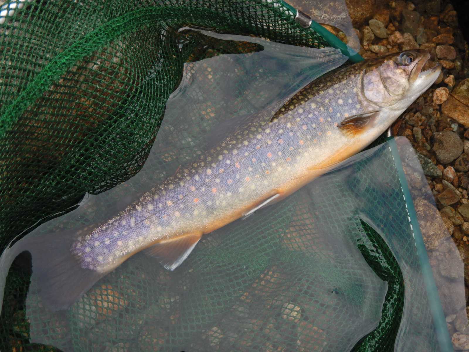 朝は雨が降っていたので、雨雲レーダーを見て昼近くになってから釣りに出掛けました。釣り場には5台もの車が止まっていました。釣りを終えた顔見知りの人に状況を聞いてみると、朝から雨具を着て釣りをしていた人がいたとのことでした。少しの雨では水量に変化はありません。全くアタリがありませんでしたが釣り始めから1時間ほど過ぎた頃、ようやくイワナが掛かりました。水中を覗いてみたくなりました。魚はどのへんを泳いでいるのでしょう。2時間でようやく2匹目、こちらは24㎝ほどあったのがせめてもの救いです。ルアー、フライ、ミャク釣りと上流に下流に釣り人が入ります。皆さんは果たして釣れているのでしょうか?、水温のあがる夏に向かってだんだん釣れなくなっていきそうです。