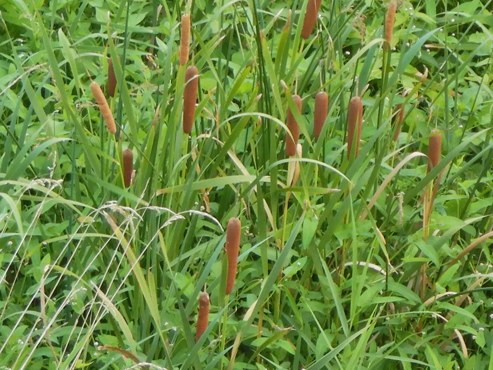 雲が多く秋晴れとは言い難いのですが、気温は28℃台まであがりました。橋の上から河原の雑草の中にガマの穂を見つけました。ガマの穂の形からカマボコ(蒲鉾)となったそうですが、アメリカンドッグに似ています。夏草が刈り取られた後に出て来た彼岸花が咲き始めました。彼岸の頃に咲くから彼岸花ですが、温暖化の影響で咲く時期がずれるということはないのでしょうか、9月も中旬ですから、そろそろサケの遡上の季節です。去年は一匹も見ることができませんでしたが、今年も水量が多いので見つけるのは大変そうです。