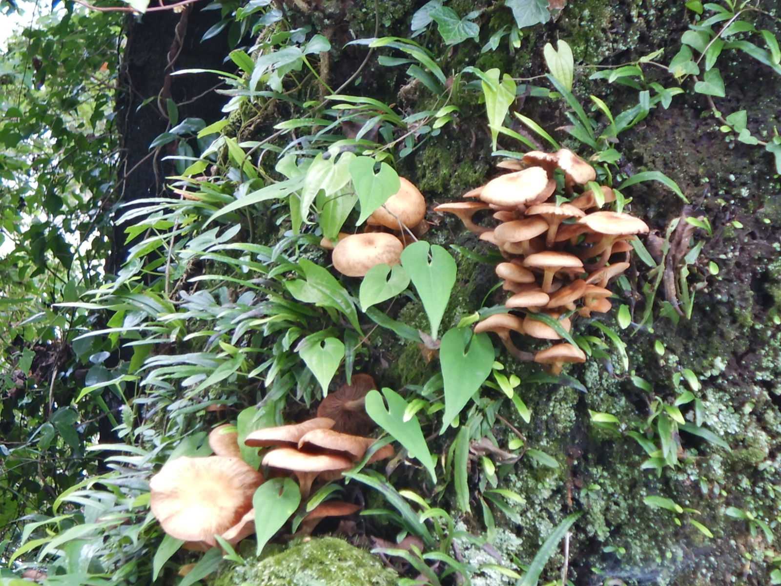 雲間から何日振りかで青空が見えました。雨つづきだとキノコ、地面ばかり見ていたのですがこんなところにキノコが出ていました。桜の老木のようです。ミズヒキ、ゲンノショウコ、雨続きで、神社の石段を登りながら運動不足になっていると感じました。二の鳥居の近くにアオダイショウがいました。神様のお使い?、久し振りの晴れ間で少しだけ気温が上がったので出てきたようです。神社の十月桜が数輪の花をつけていました。9月になったばかりなのに、桜は朝の気温が下がって来たのを敏感に感じているのでしょうね。日が差したのはつかの間で、また灰色の雲に覆われてしまいました。