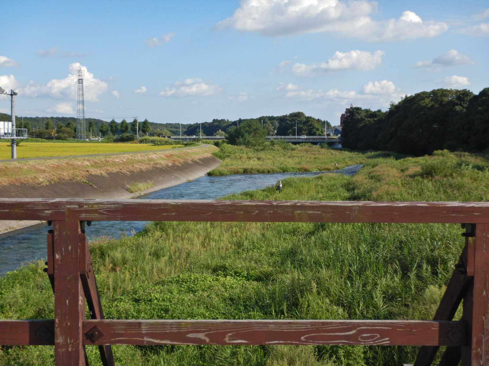 雲が多めで秋晴れとは言えないけれど久し振りに晴れました。増水している川で鮎釣りの人、濁りは無いのですが40㎝くらいは水位が高くなっているようです。小さな花ですがマルバルコウソウが目につきます。アメリカセンダングサ、オシロイバナと黒い種、黒い種の中には白い粉状のものが入っていて花の名前になったそうですが、この種には毒がありますので十分な注意が必要です。毒のある植物は意外に多いようです。
