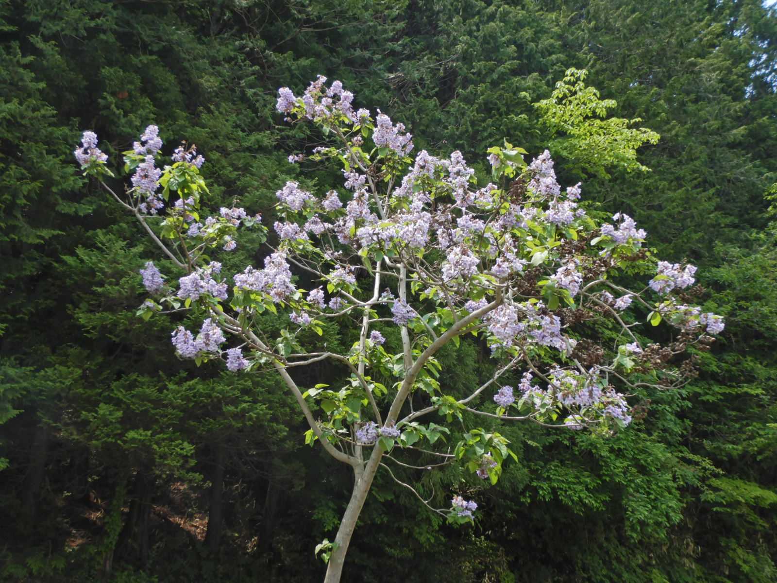 那須町の道の駅「東山道 伊王野」までお米を買いに行った帰り道、桐の花が咲いているのを見つけました。福島県の会津地方などでは珍しくも無いのですが、当地ではあまり見かけません。フジの花の色にも似ていますが、どちらかと言うとライラックの花色に似ていると思いました。畑の中にキジのつがいがいました。雄に比べて雌のキジは地味な保護色をしています。こちらに気づくとすぐに藪に逃げ込むのですが、雄が先に逃げて雌が残りました。竹藪の中にはマムシグサ、何とも薄気味悪い名前ですが、これが秋には毒々しい赤い実の塊ができるのです。