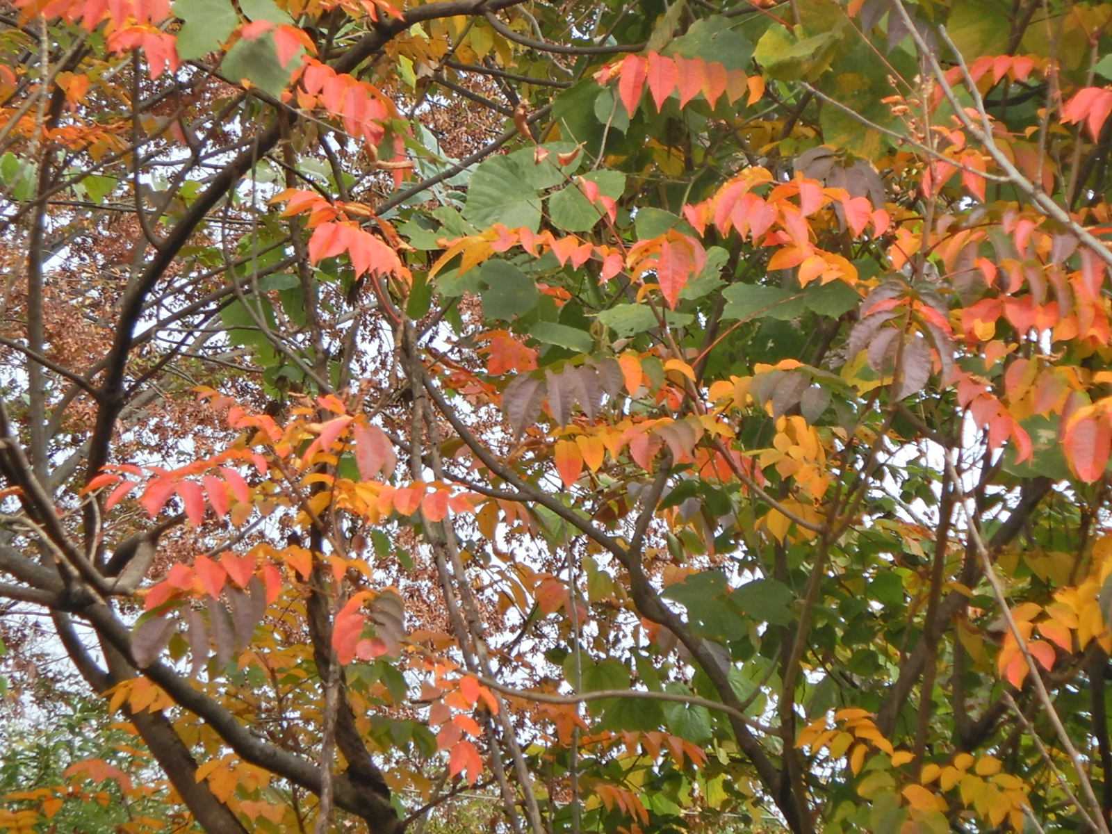 気温は高いのですが今日も曇り空、花が無いか城山に行ってきました。一本だけ色鮮やかで目立っていたウルシです。標高200mでは早いでしょう。毎年一番先に色づきます。入口にセイヨウフウチョウソウ(クレオメ)が咲いていました。サザンカ、すべて葉を落とした桜に蔦の葉が色づきはじめていました。イチョウもモミジの葉もまだ緑で、気温は今日も23℃台まであがりました。夏も異常な暑さで秋も暖かい日が続いています。
