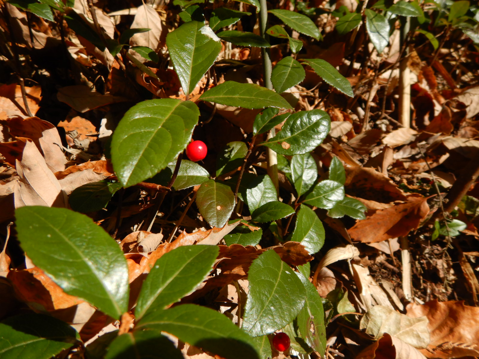 低山の3回目は古賀志山を歩きました。途中までは北コースを歩き、広場から中尾根に出ました。冬枯れの中にヤブコウジの赤い実を見つけました。中尾根から、これから向かう559ピークが見えてきました。559ピークからの古賀志山、気温は高いようですがそれでも今は冬ですから、風を避けて休みました。遠くには筑波山、「雲海」などといっている人もいましたが昼近い時間ですから、おそらく霞でしょう。日光方面の山、家の方からは男体山と女峰山が連なって見えますが、ここからは二つの山の間に大真名子、小真名子が見えますし、日光白根山も見えます。これから先の540ピーク、手岡峠(ちょうかとうげ)まで行ってから下ります。振り返ると559ピークが見えてきました。こちらからは衝立のように見えます。脚が重くなってきたころに540ピーク到着、ここからは日光方面の山はもちろんのこと、皇海山も見えました。559ピークから北を歩く人は少なく3人とすれ違っただけでした。峠から100mくらい下るとすぐに林道です。かなりの下り坂で歩幅が伸び、歩く速度も自然に速くなるほどでした。「人生下り坂最高」と言っていた故、火野正平さんの自転車旅での言葉が頭に浮かびました。北コースでは葉っぱだけだった冬イチゴが、ここでは赤い実をつけていました。森林公園の駐車場まで戻ると、朝は駐車場所を探すほどの車でしたが、50台くらいに減っていました。
