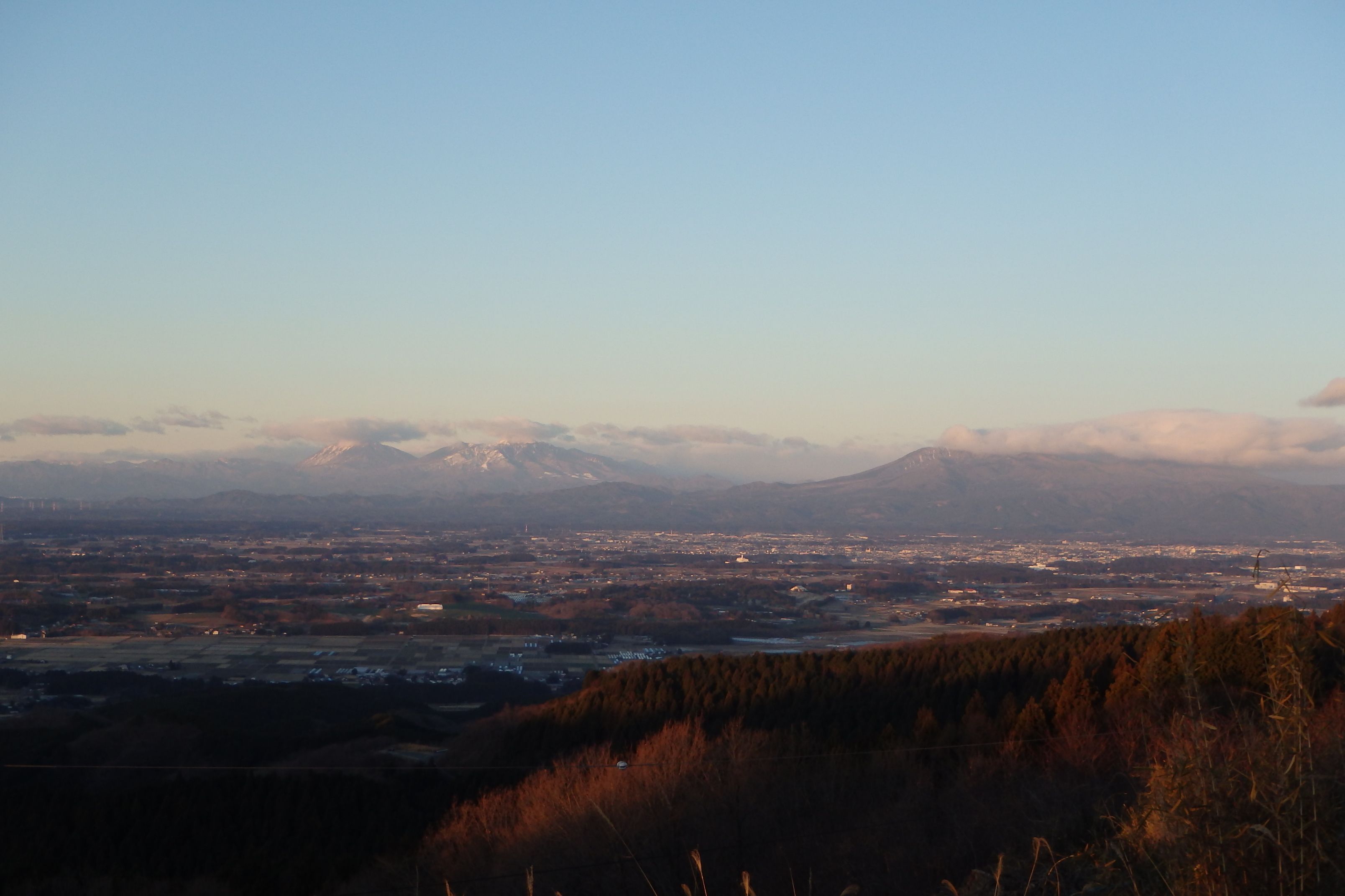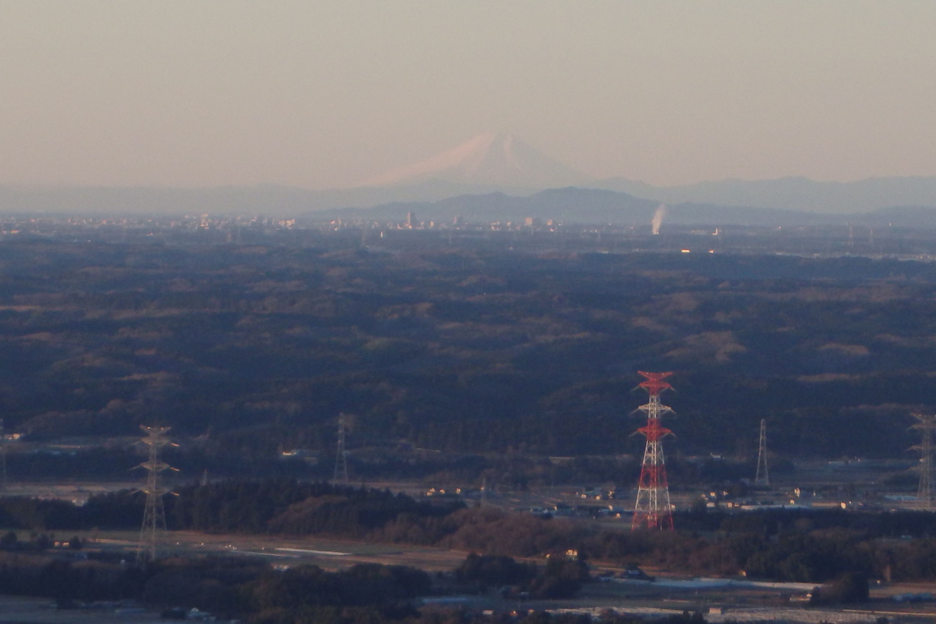 宇都宮市街の向こうに太平山、その向こう209キロ先に富士山がこれだけ見えれば十分です。