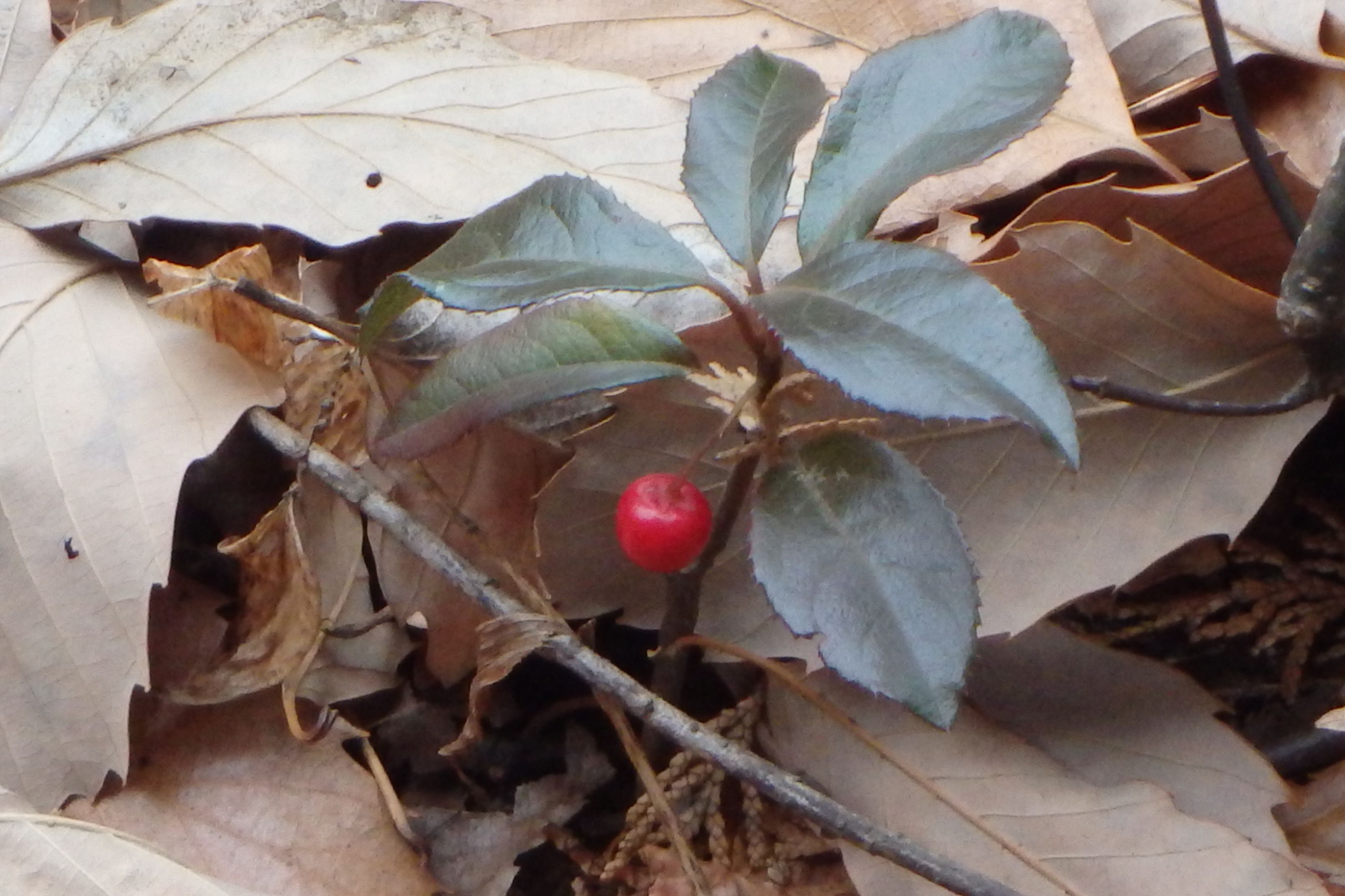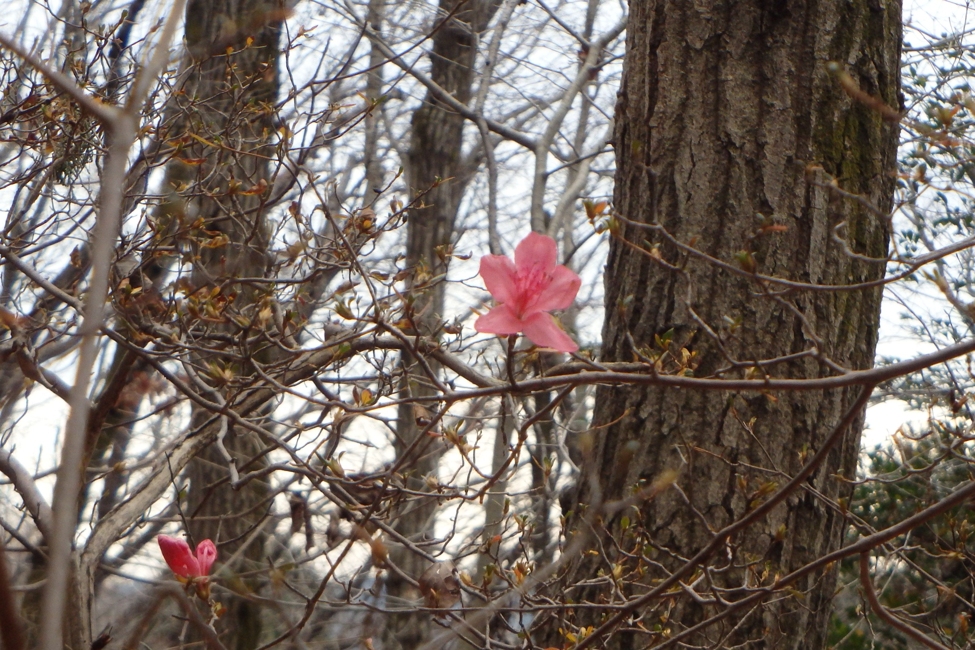 赤川ダム近くまで下った林の中では山ツツジの花を見つけました。暖冬とはいえ、雑木林が霜から守っているのでしょうね。