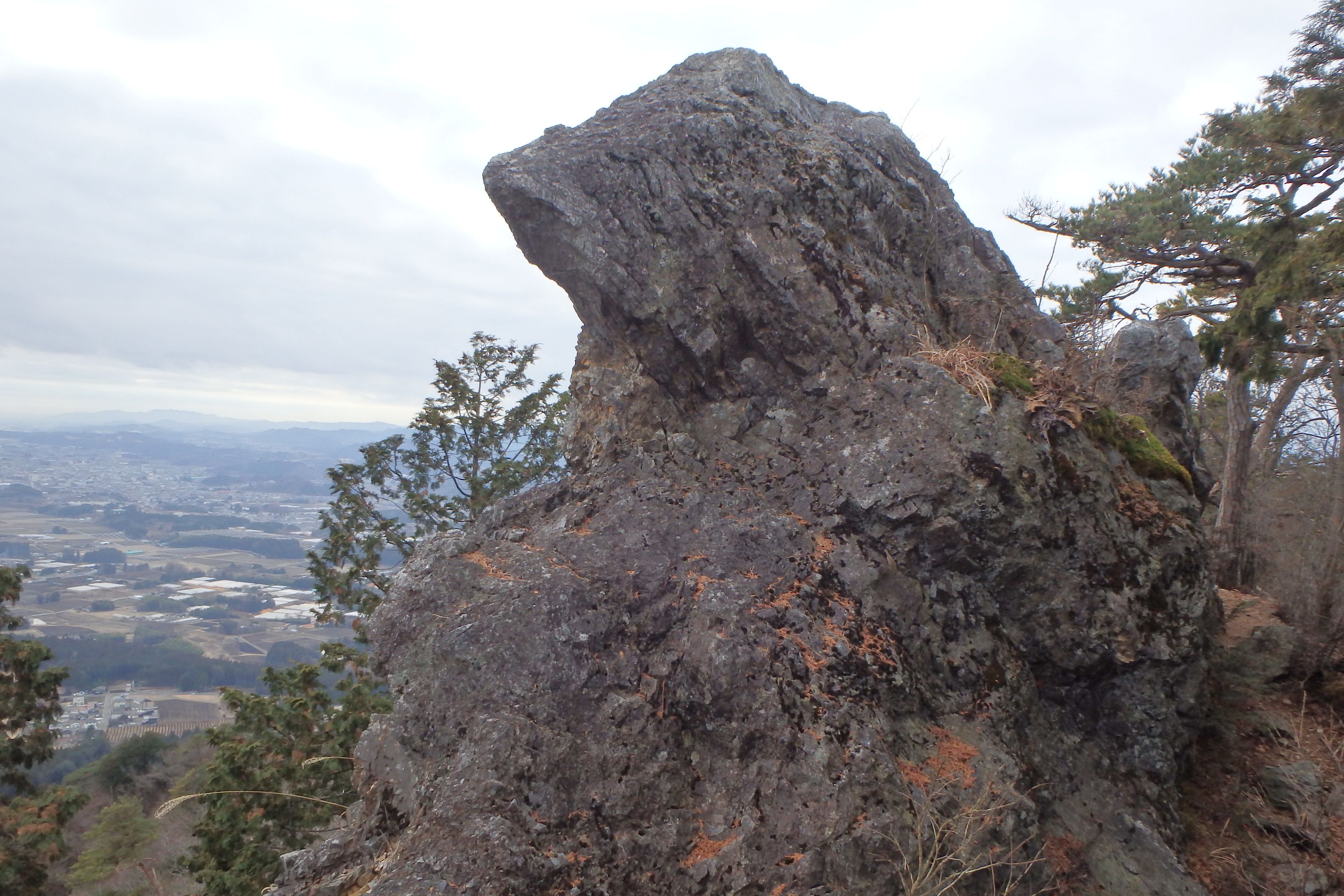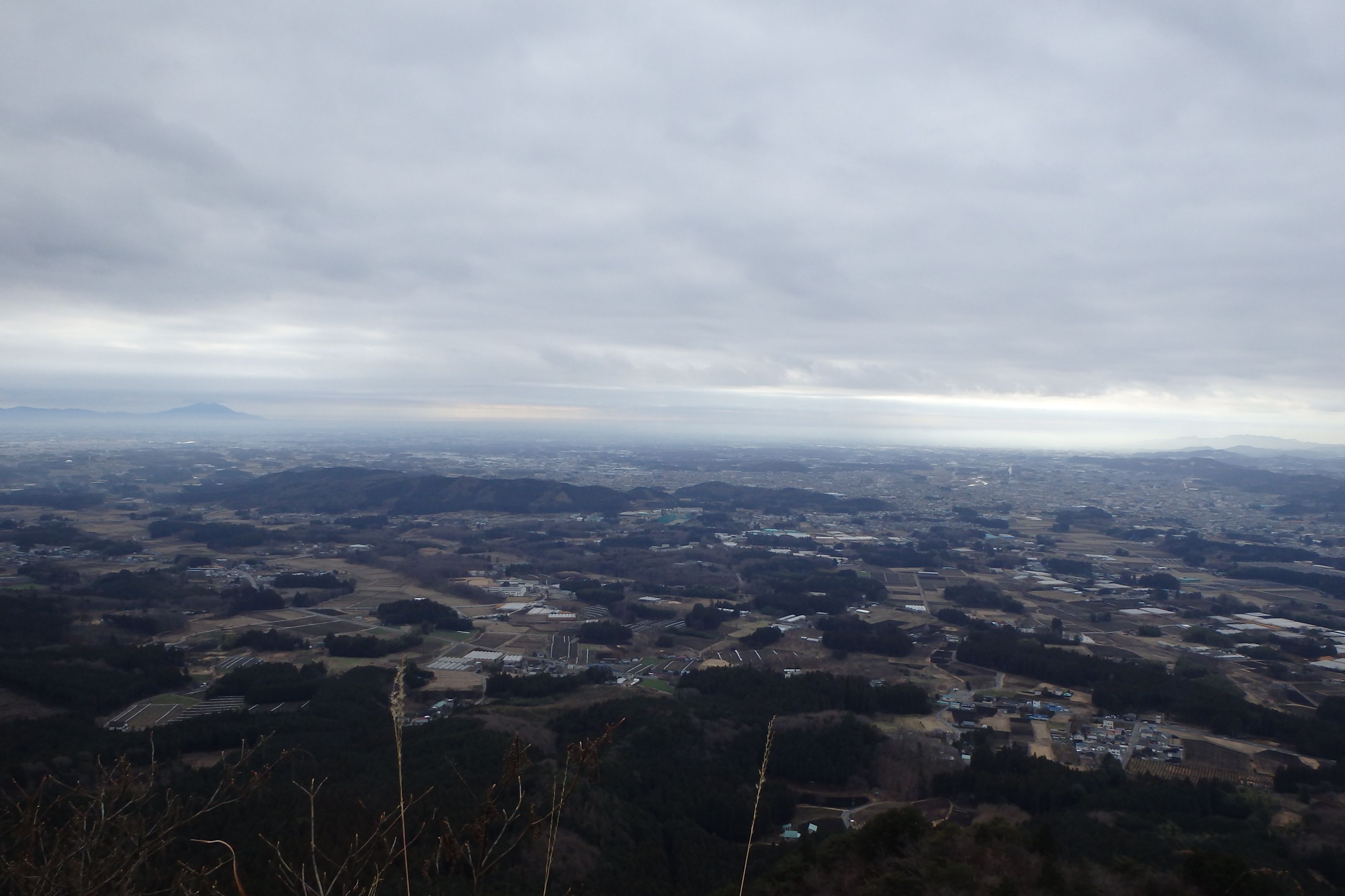 左奥に筑波山、どんよりとした雲の向こうに関東平野、時計を見ると11時半でしたが日の短い時期でもあり、赤岩山へは行かずここから引き返すことにしました。