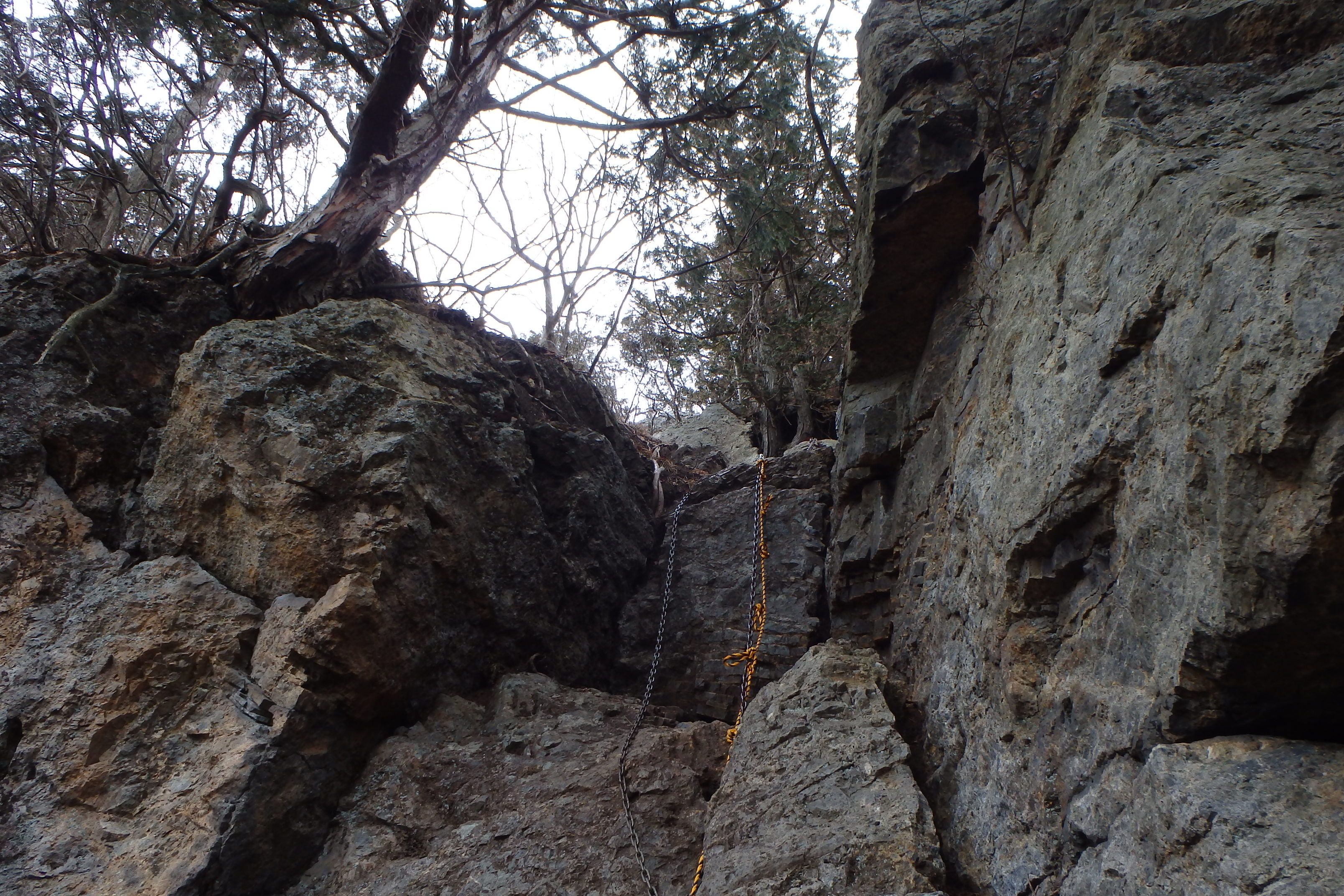 古賀志山への最短コース、東陵のクサリ場を登っていきました。