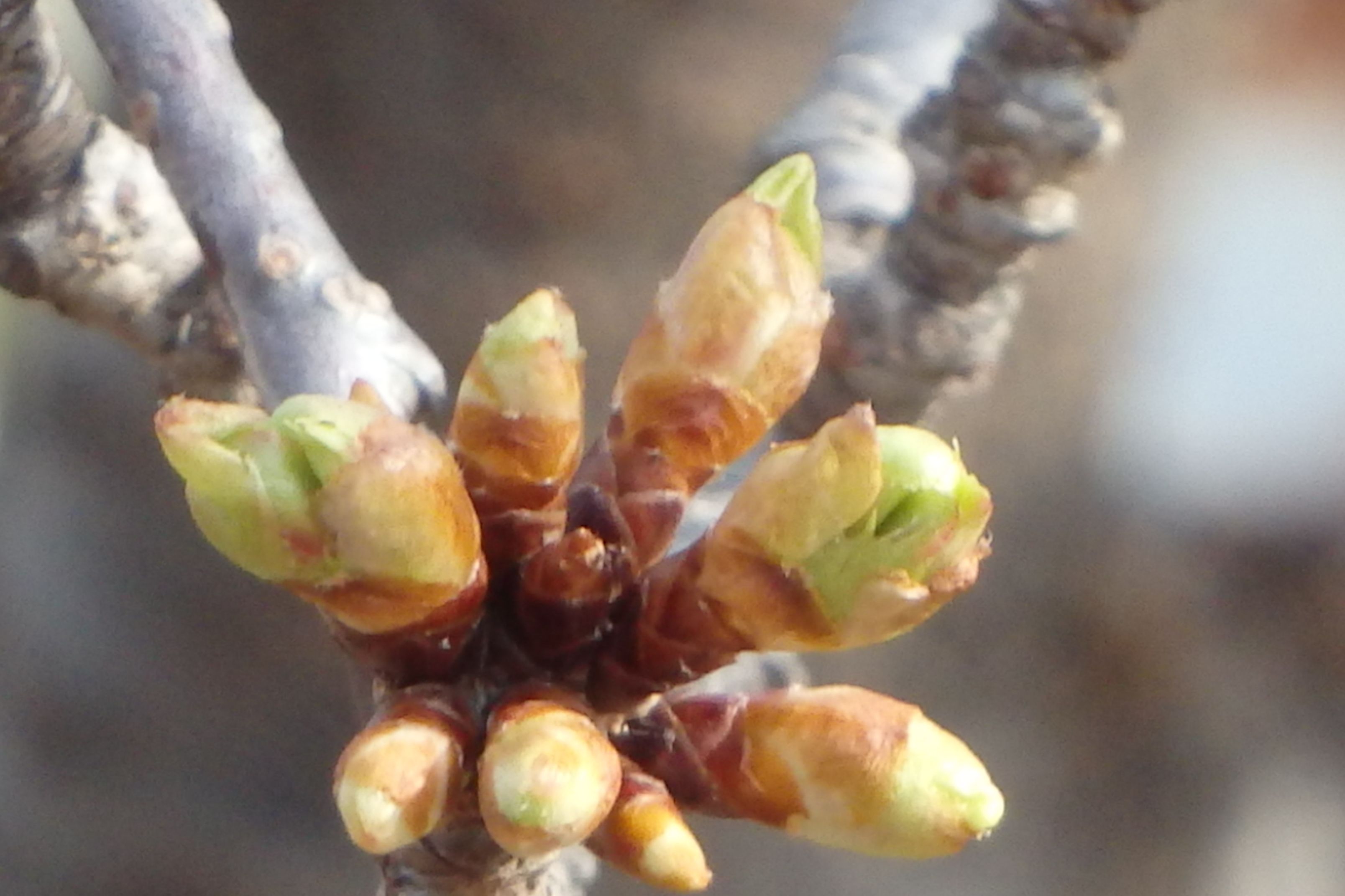 川岸の河津桜の花芽まだまだ、