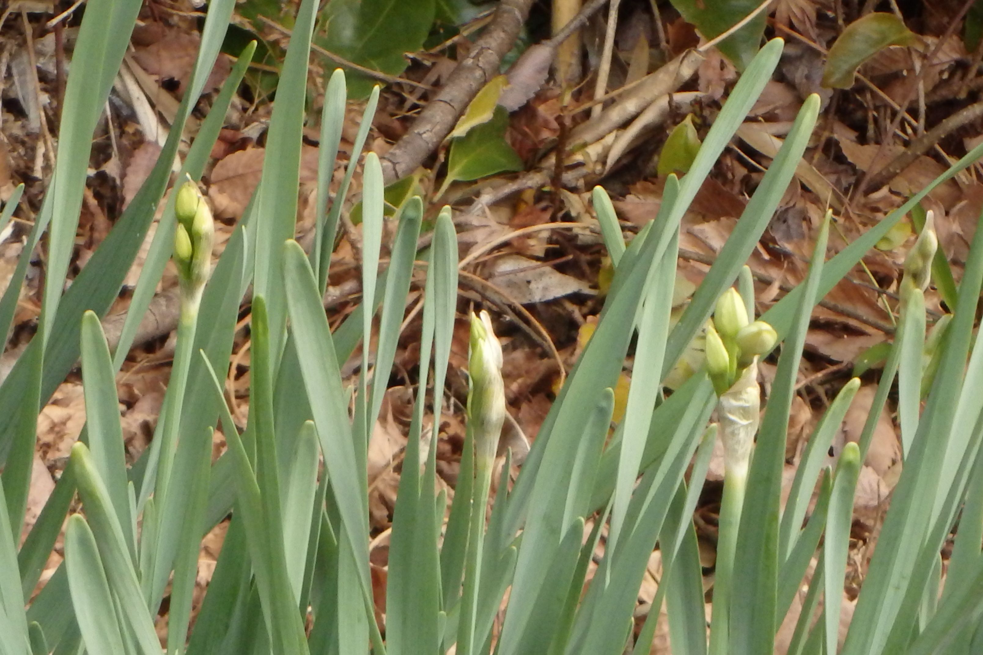 県都、宇都宮市ではスイセンが開花したそうですが、当地で比較的早く咲く場所のスイセンは、まだ蕾でした。