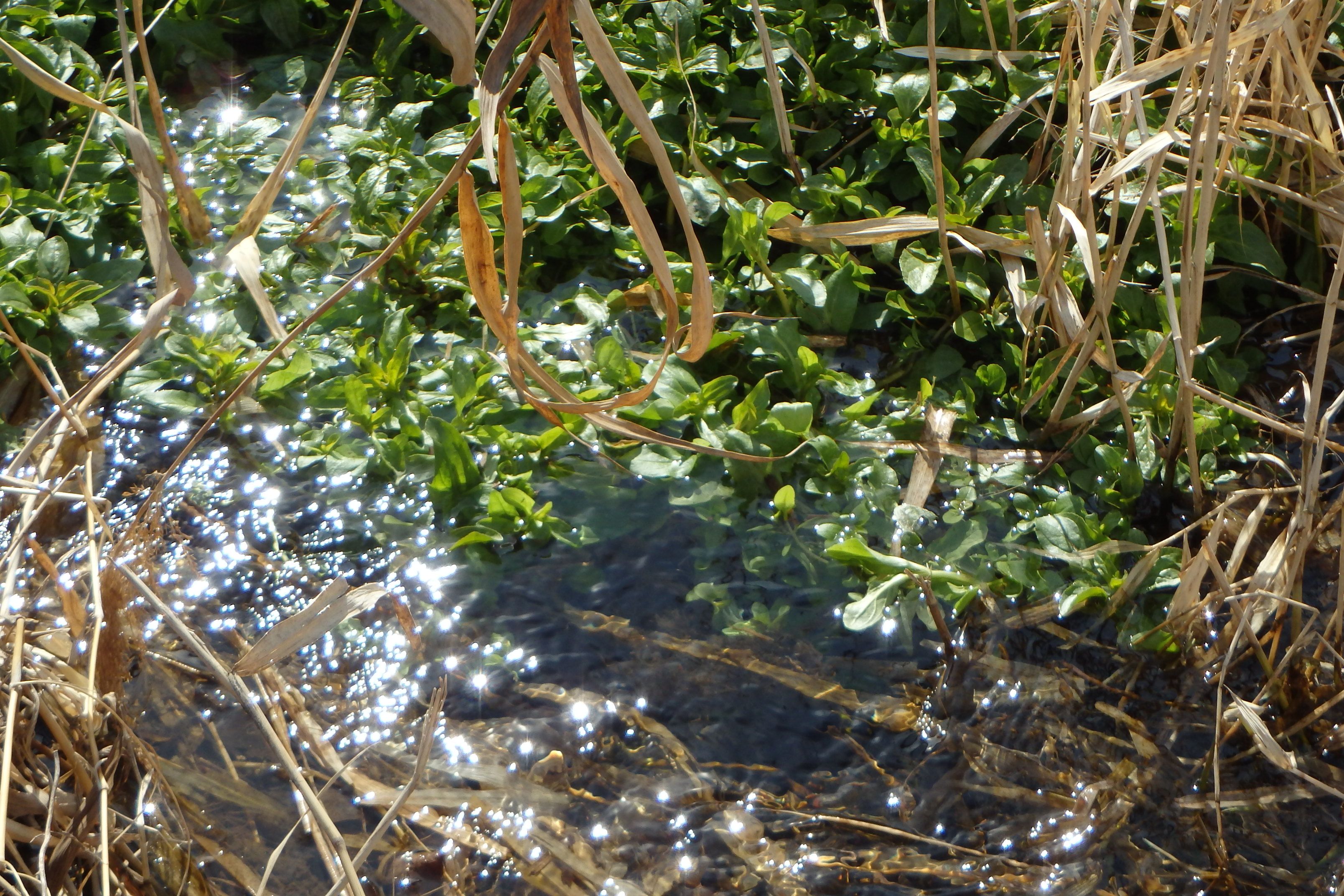 河原の一部が緑に見えるのはクレソンです。
